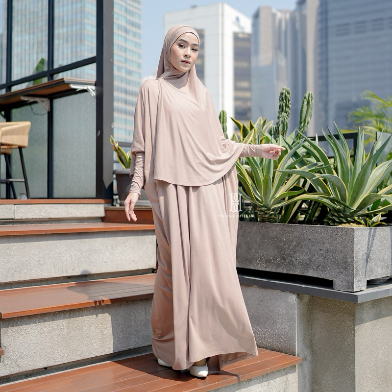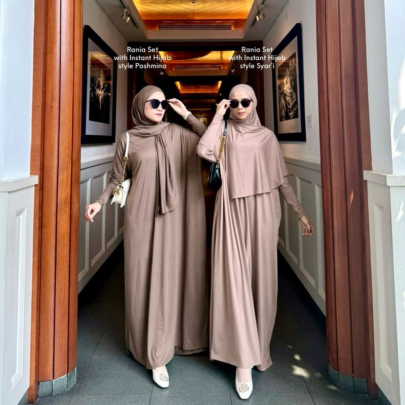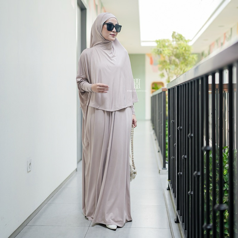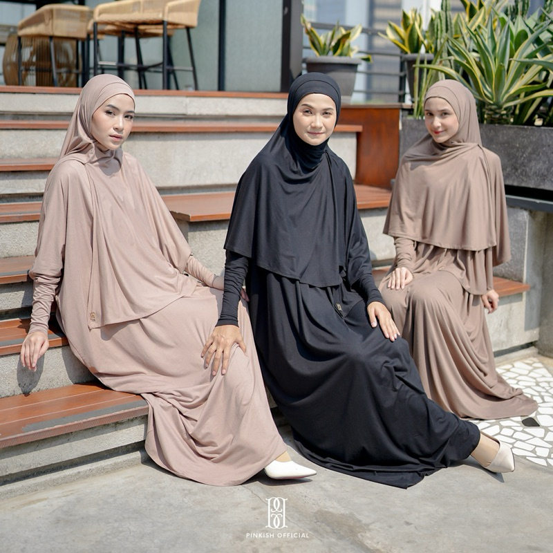 [Mall] PINKISH OFFICIAL - RANIA SET (DRESS ABAYA + HIJAB INSTAN BAHAN COTTON RAYON SPANDEX IMPORT, ABAYA SET UMROH DAN HAJI)
