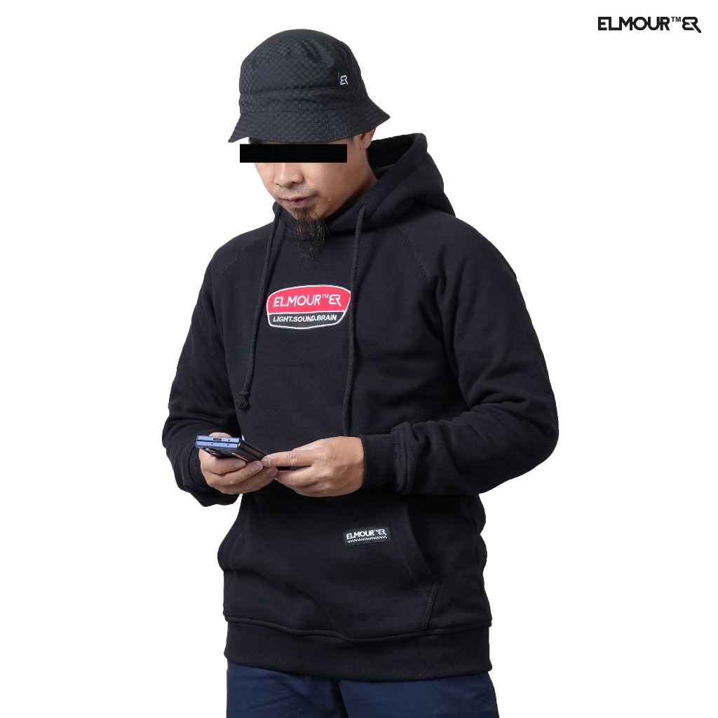 ELMOUR HOODIE FLEECE KATUN TEBAL 300 330GSM HEAVY WEIGHT OVERSIZE BLACK SERIES