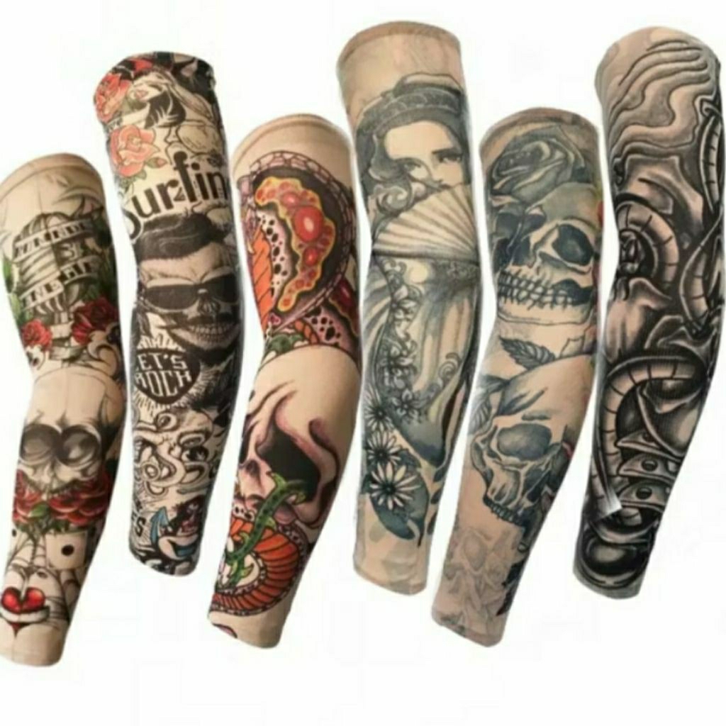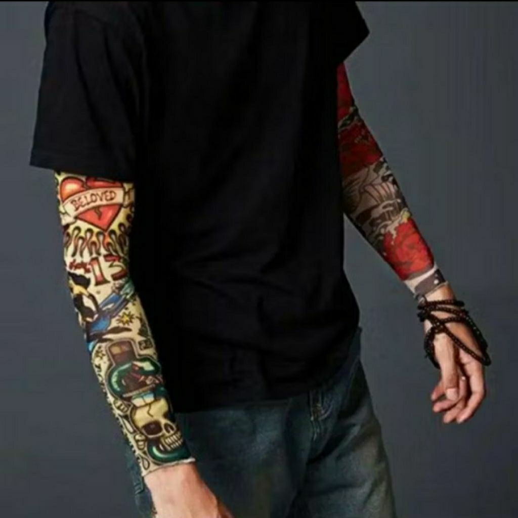 3pasang manset tangan pria import gambar Tatto keren Seperti asli Sarung Lengan panjang Sambungan Baju Hanshok Tipis lembut