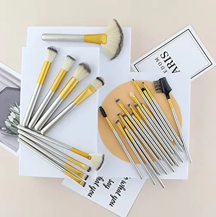 Set Kuas Rias, 24 pcs Kuas Kosmetik Sintetis Premium Profesional Dengan Tas Set Perjalanan Kuas Perona Mata dan Alas Bed