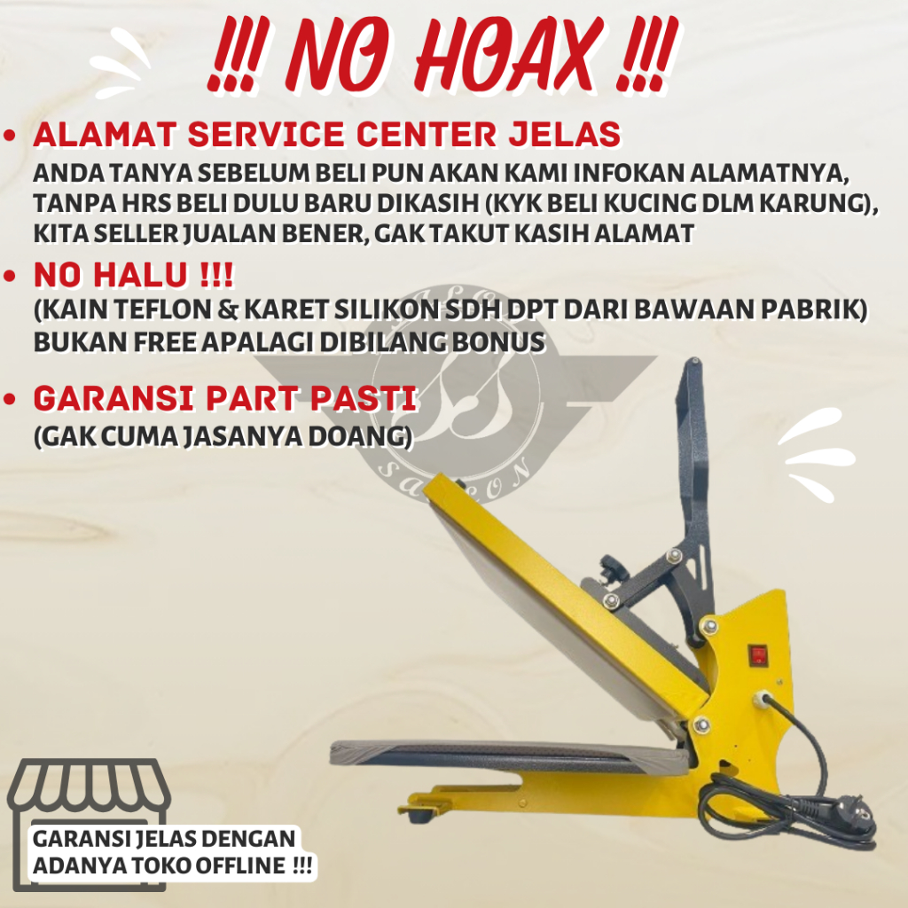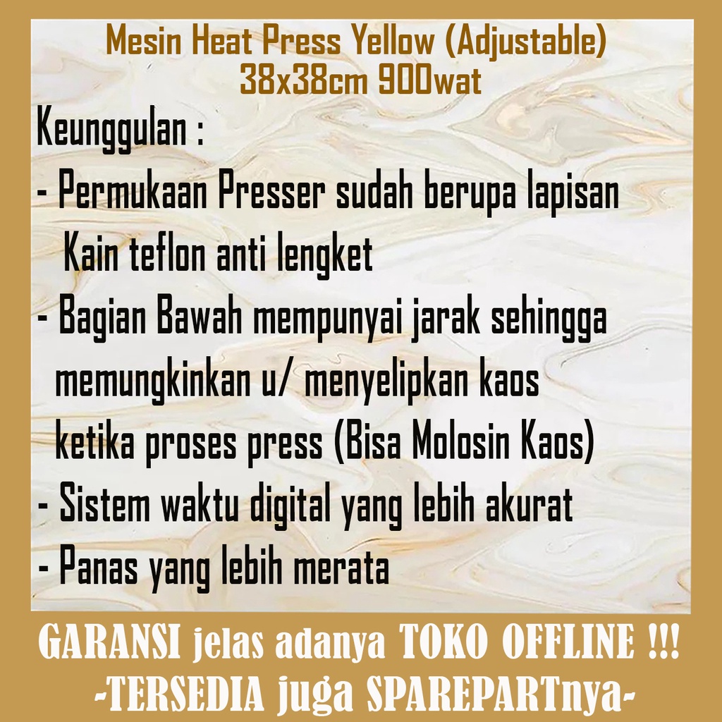 MESIN PRESS KAOS / BAJU 38X38 U-SHAPE YELLOW (ADJUSTABLE , BISA U/ MOLOSIN KAOS) SABLON DTF, DTG, SUBLIMASI TRANSFER PAPER, POLYFLEX