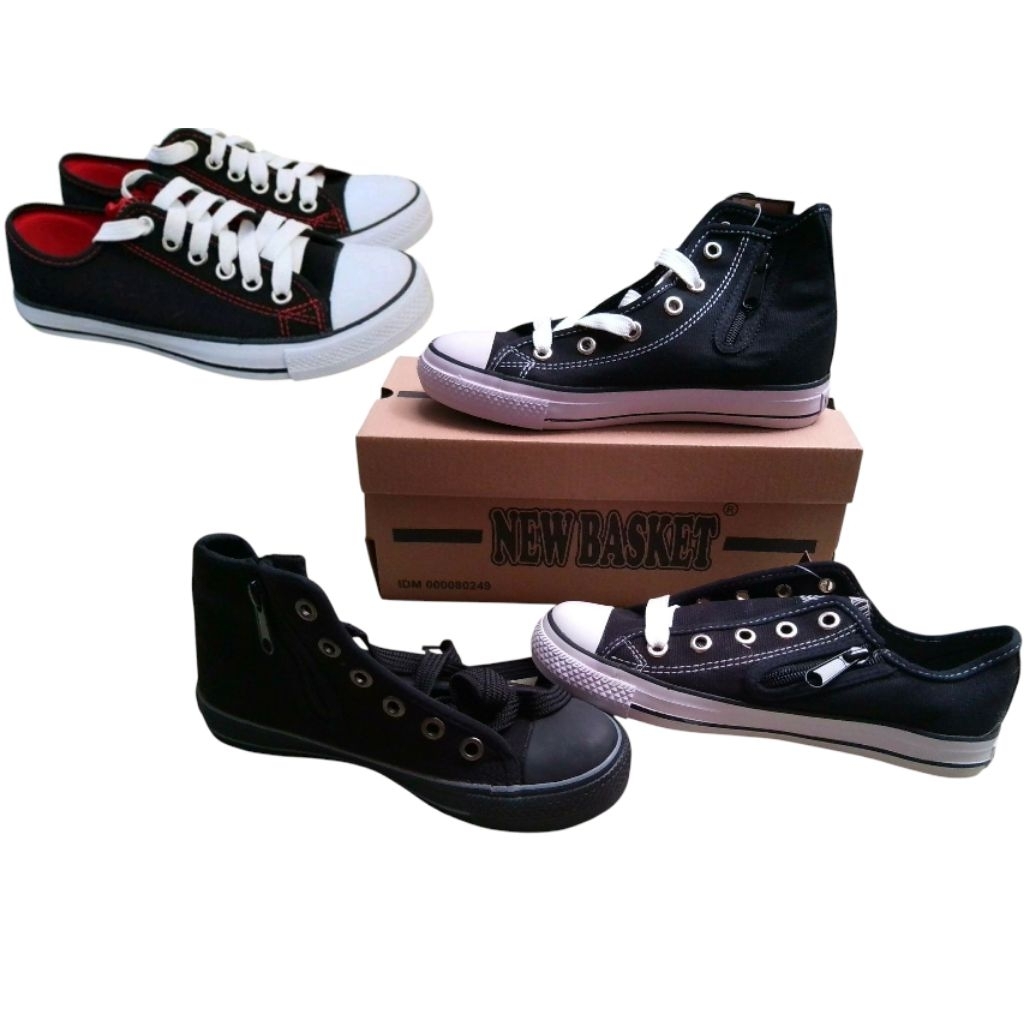 Sepatu Sekolah Canvas New Basket 100 PERSEN Original 338 HC LC Tinggi Pendek Sepatu Hitam Putih