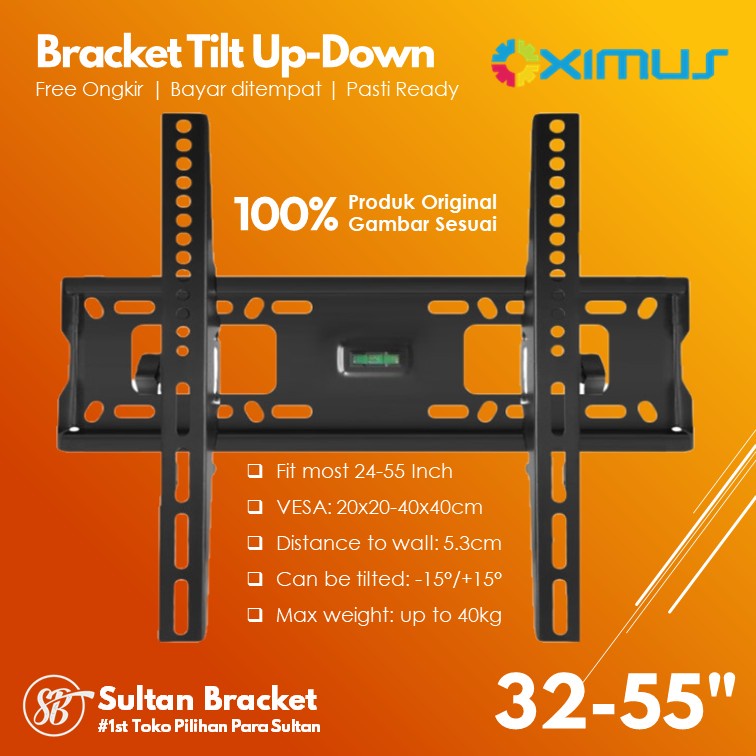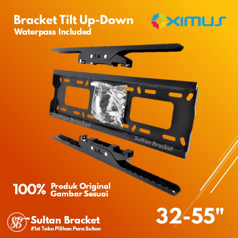 Bracket TV Smart/Android LED 55 50 43 42 40 32 Inch Tilt Up Down (Nunduk) Plat Tebal dan Lebar - Bundling Waterpass