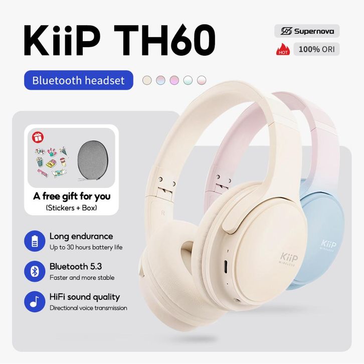 Supernova x KiiP Wireless TH60 Headphone Bluetooth Wireless Headset Earphone BT5.3 Macaroon
