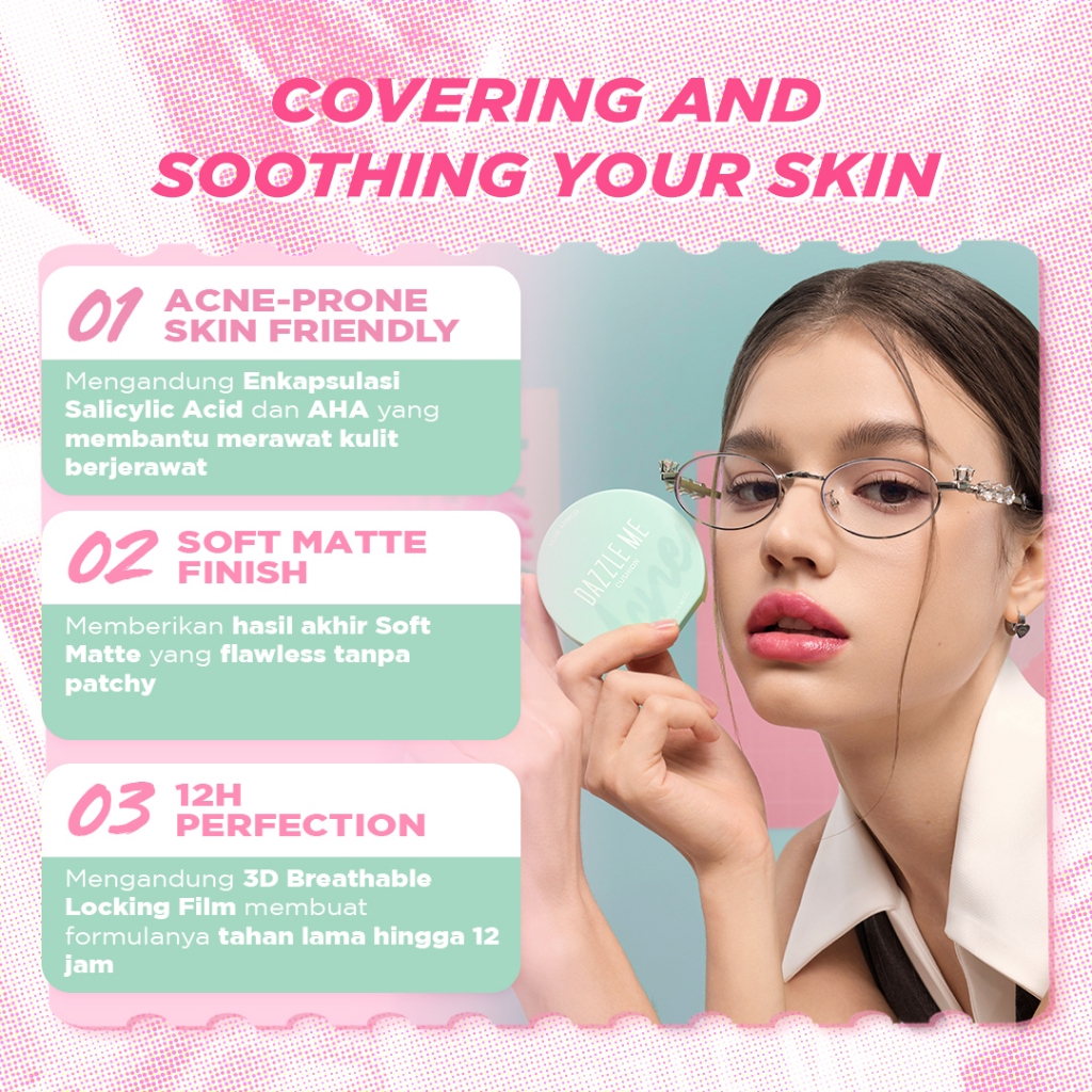 PAKET MAKEUP 3PCS DAZZLE ME ACNE ARMOR MAKEUP BUNDLE ACNE SOOTHING SETTING SPRAY FLAWLESS FLEX COMPACT POWDER CUSHION ACNE-PRONE FRIENDLY TAHAN LAMA UNTUK KULIT BERJERAWAT
