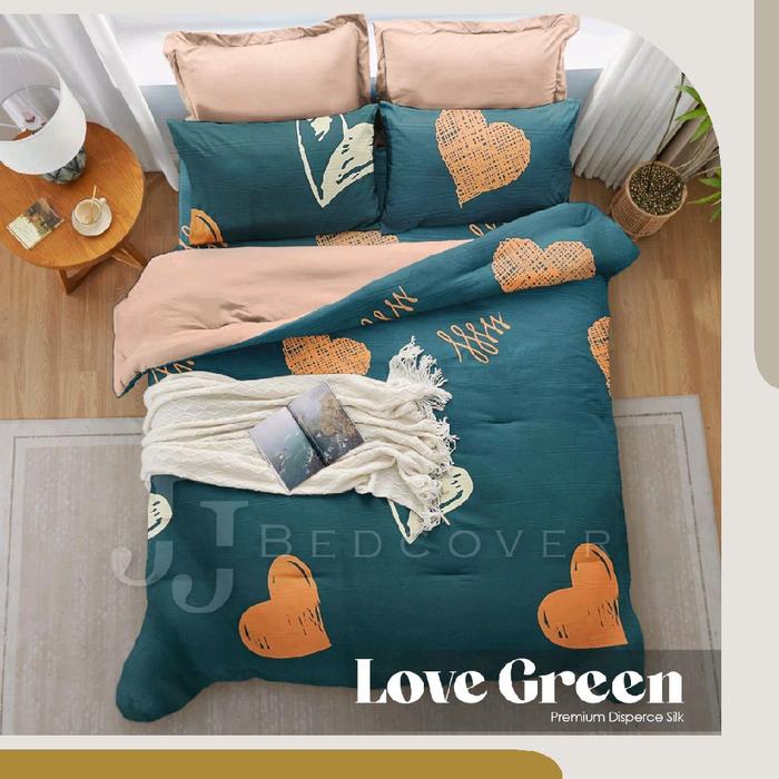 JJ BEDCOVER - BedCover Set Lengkap + Sprei - Two Tone - Bahan Microtex Dispers - MOTIF LOVE GREEN