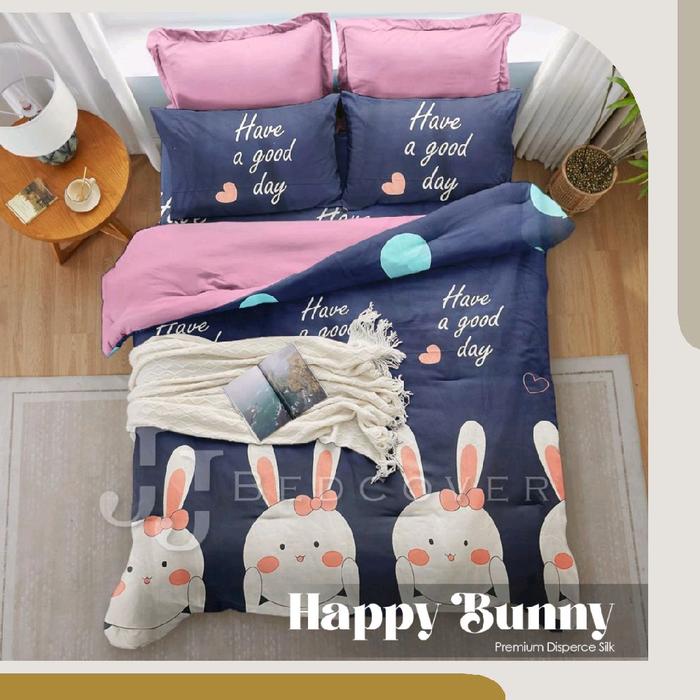 JJ BEDCOVER - BedCover Set Lengkap + Sprei - Two Tone - Bahan Microtex Disperse - MOTIF HAPPY BUNNY