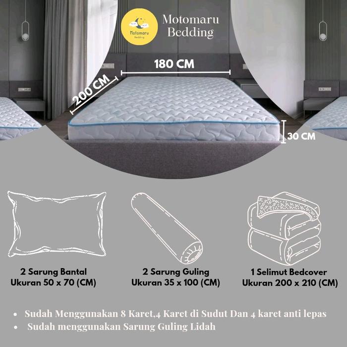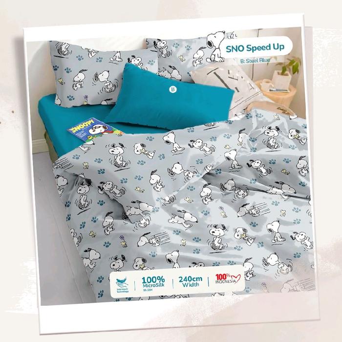 Motomaru - Bed Cover Full Set + Sprei 180cm x 200cm - TINGGI 30 CM - MOTIF SNOOPY GREY