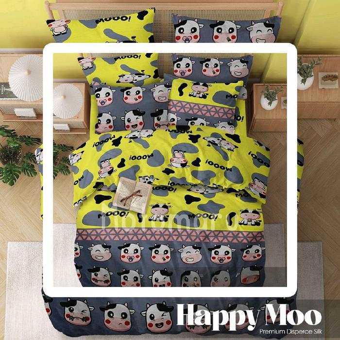 Motomaru - Bed Cover Full Set + Sprei 180cm x 200cm - TINGGI 30 CM - MOTIF HAPPY MOO