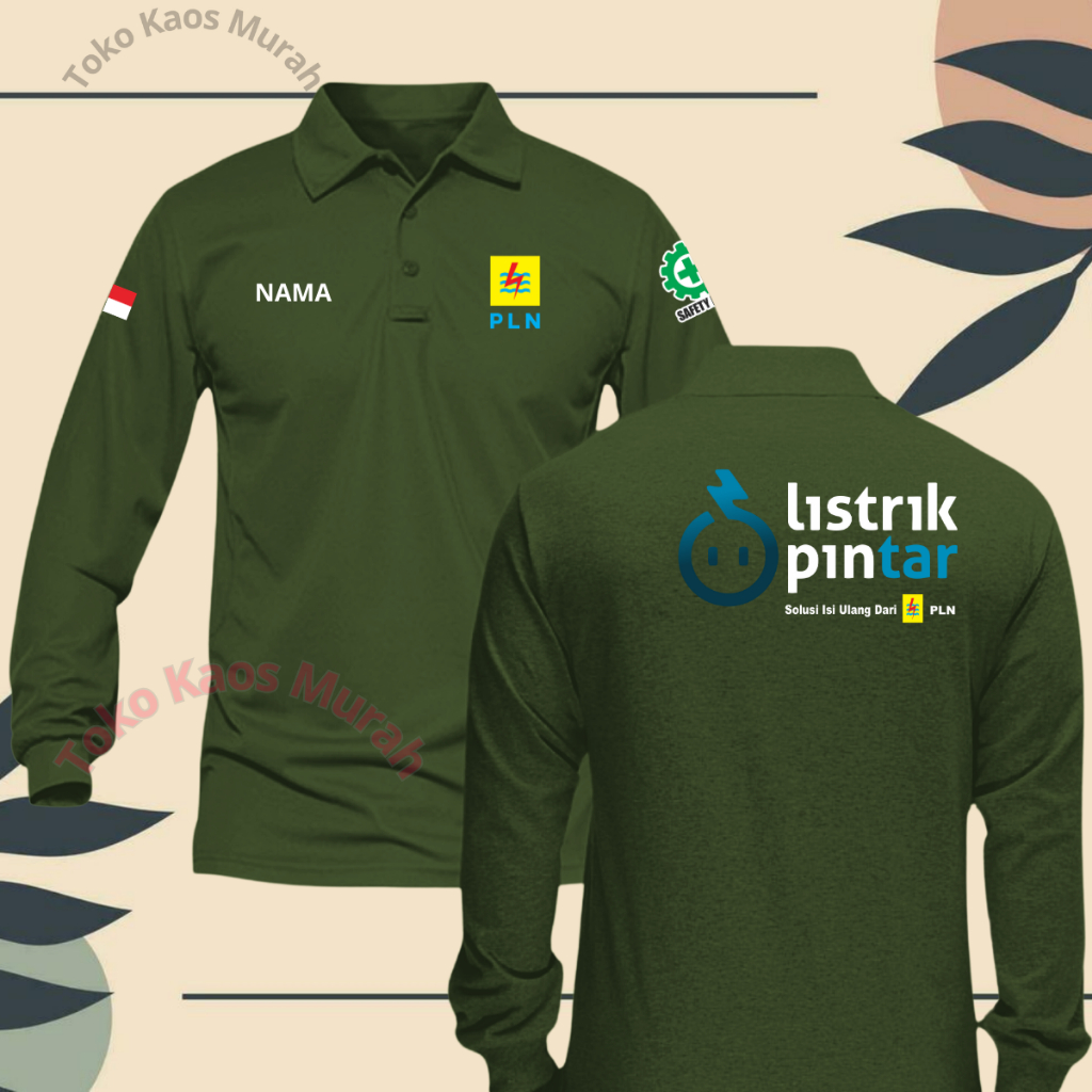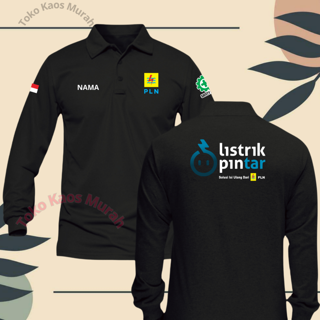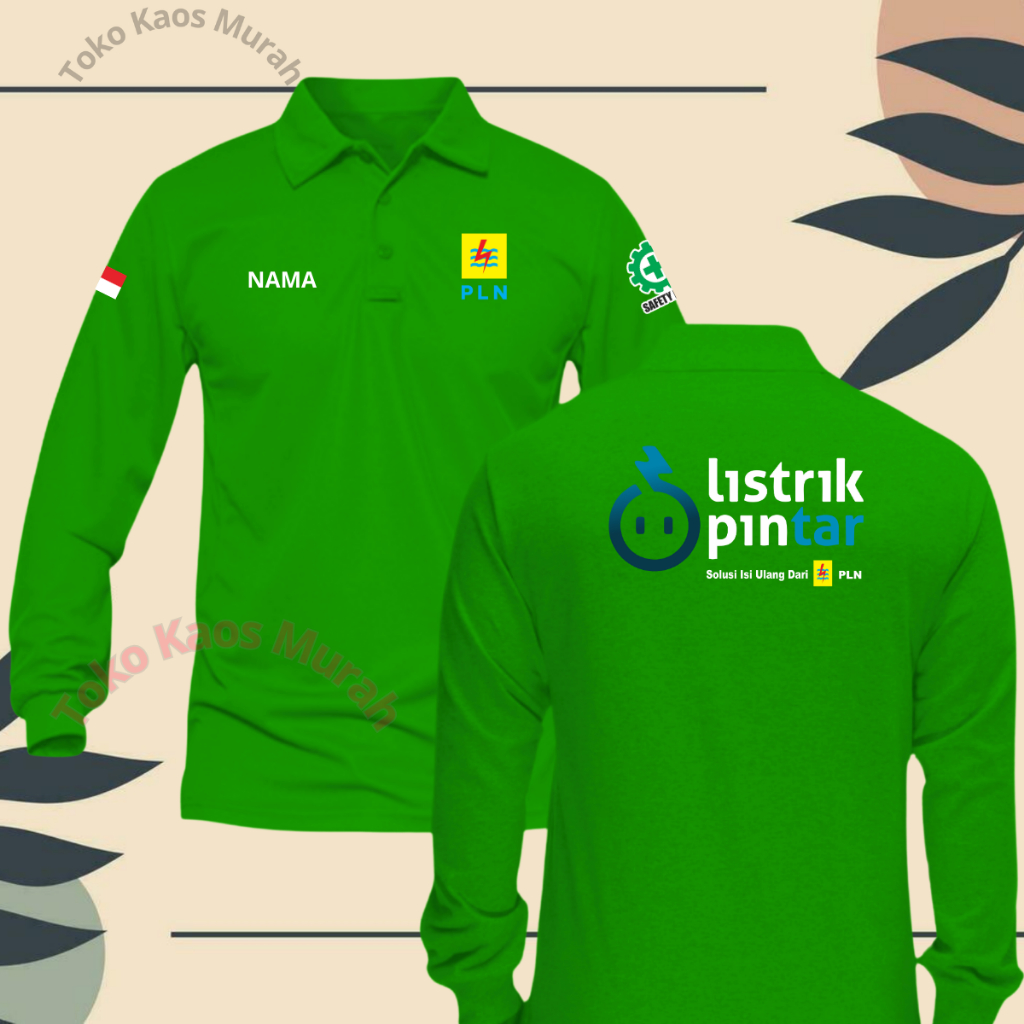Kaos Poloshirt Lengan Panjang PLN Listrik Pintar BUNM Safety Baju Polo Berkerah Seragam Kerja Atasan Unisex Sablon Poliflex DTF Printing Custom Logo