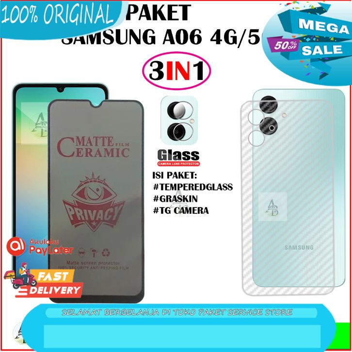 Paket 3in1 Anti Gores Layar Spy Samsung Galaxy A06 4G/5G Anti Gores Privacy Full Layar