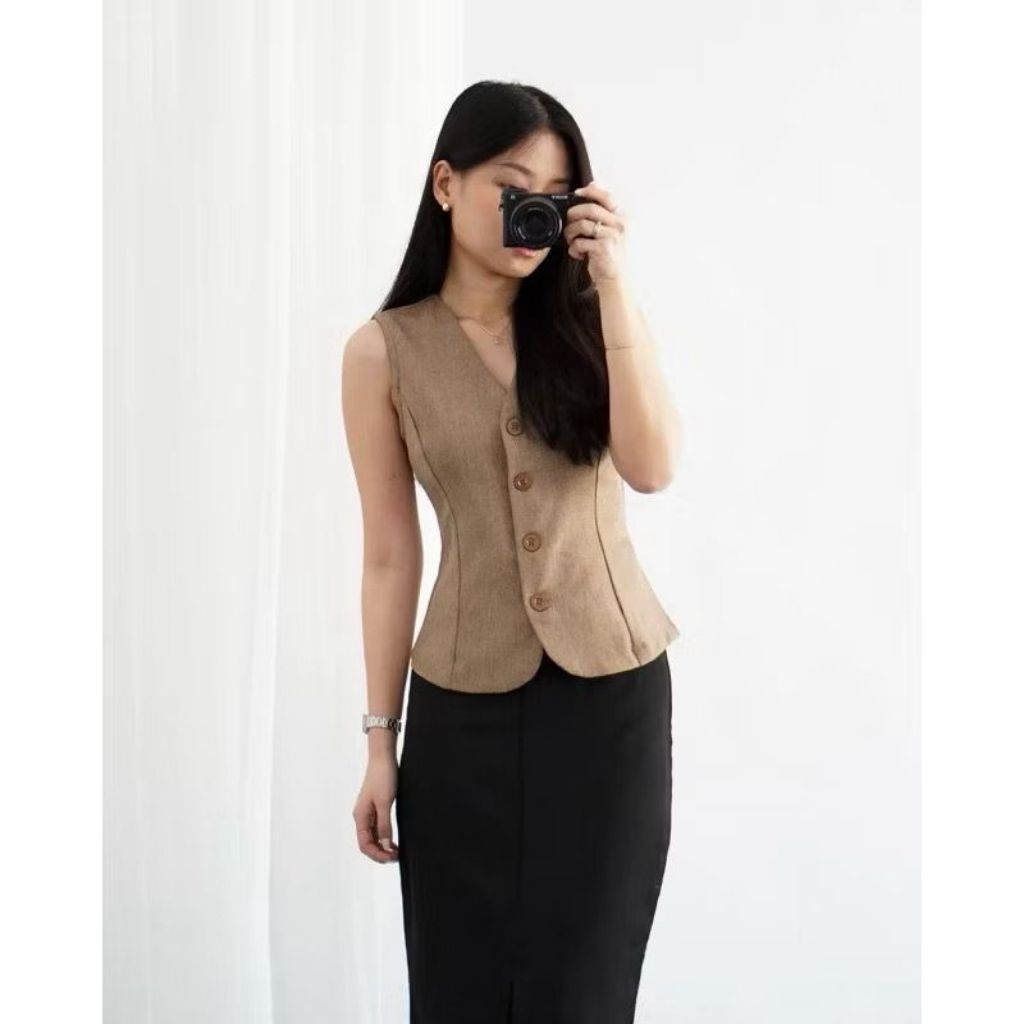 Vest Wanita Hitam Outer Korean Kekinian Aesthetic Luaran Wanita Tanpa Lengan Terbaru