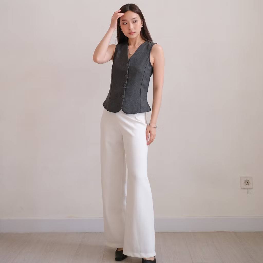Vest Korean Style Semiwoll - Vest Hitam Wanita Rompi Outer Aesthetic Terbaru Kekinian Wanita Korean Outer Tanpa Lengan