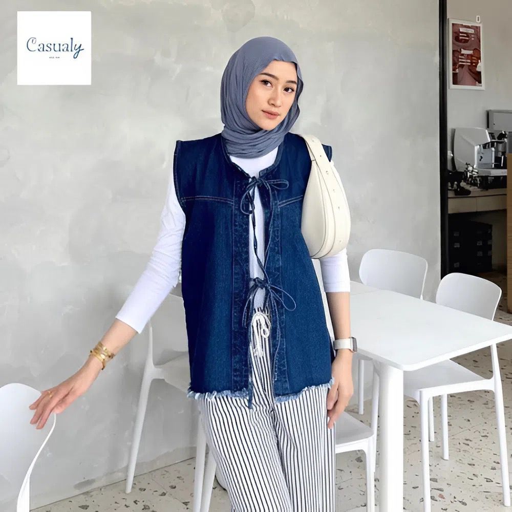 CASUALY - Carmen Vest Jeans Tali Wanita Korean Style
