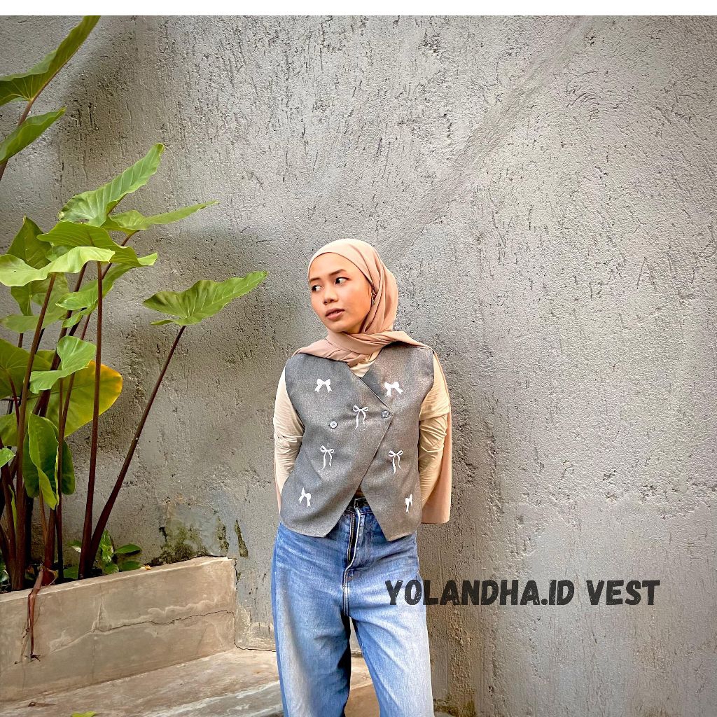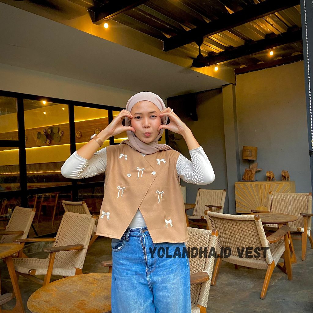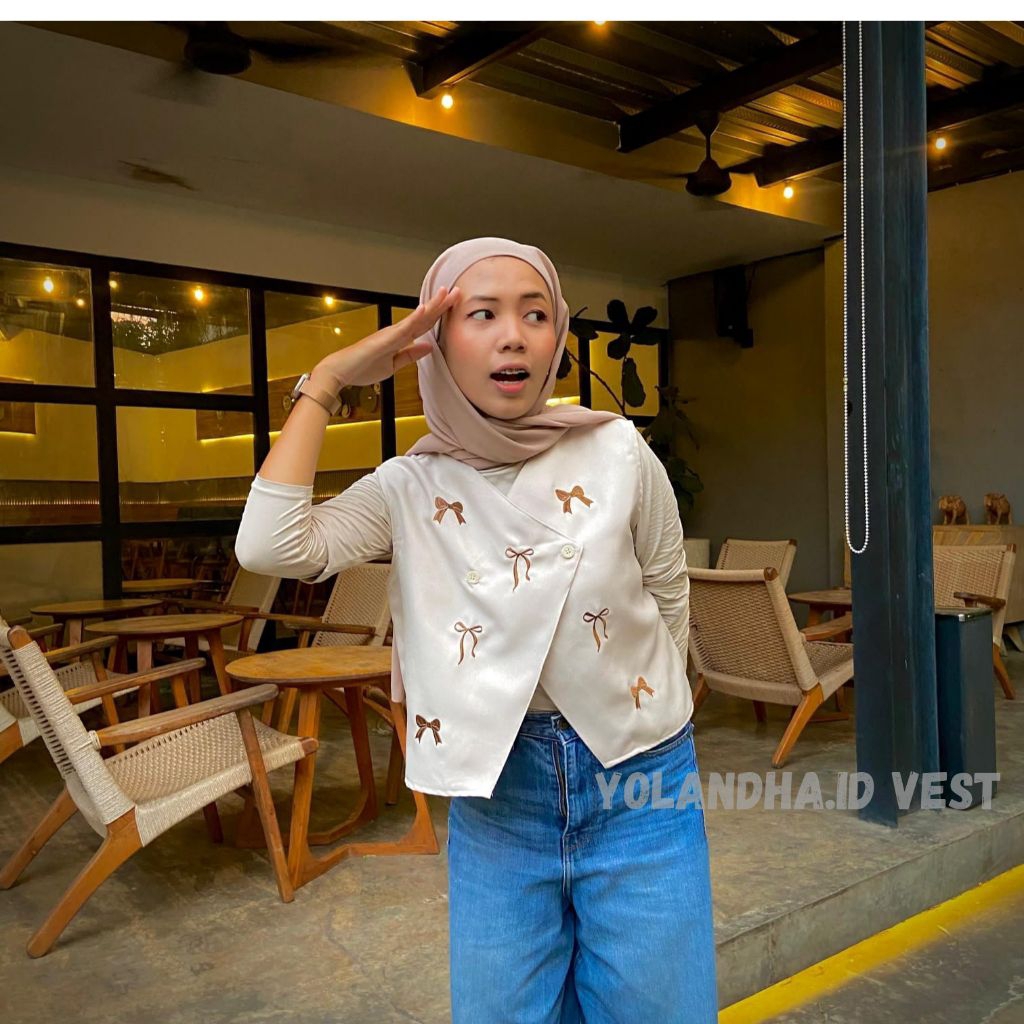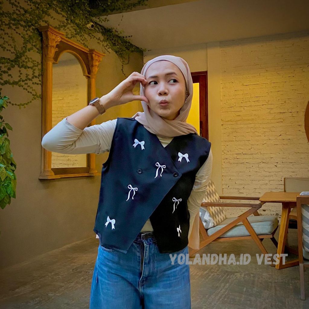 yolandha vest/ vest pita / vest bordir pita our wanita premium/ atasan rompi wanita Korean style