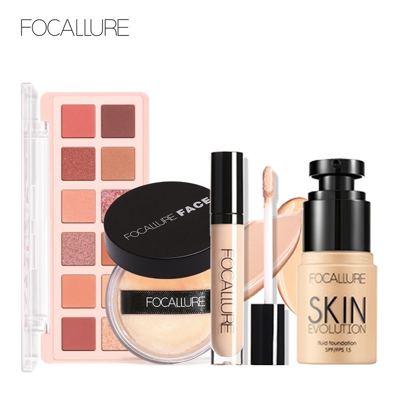 FOCALLURE 4-PCS MAKEUP SET COSMETICS KIT EYESHADOW / FACE FOUNDATION / CONCEALER / LOOSE POWDER