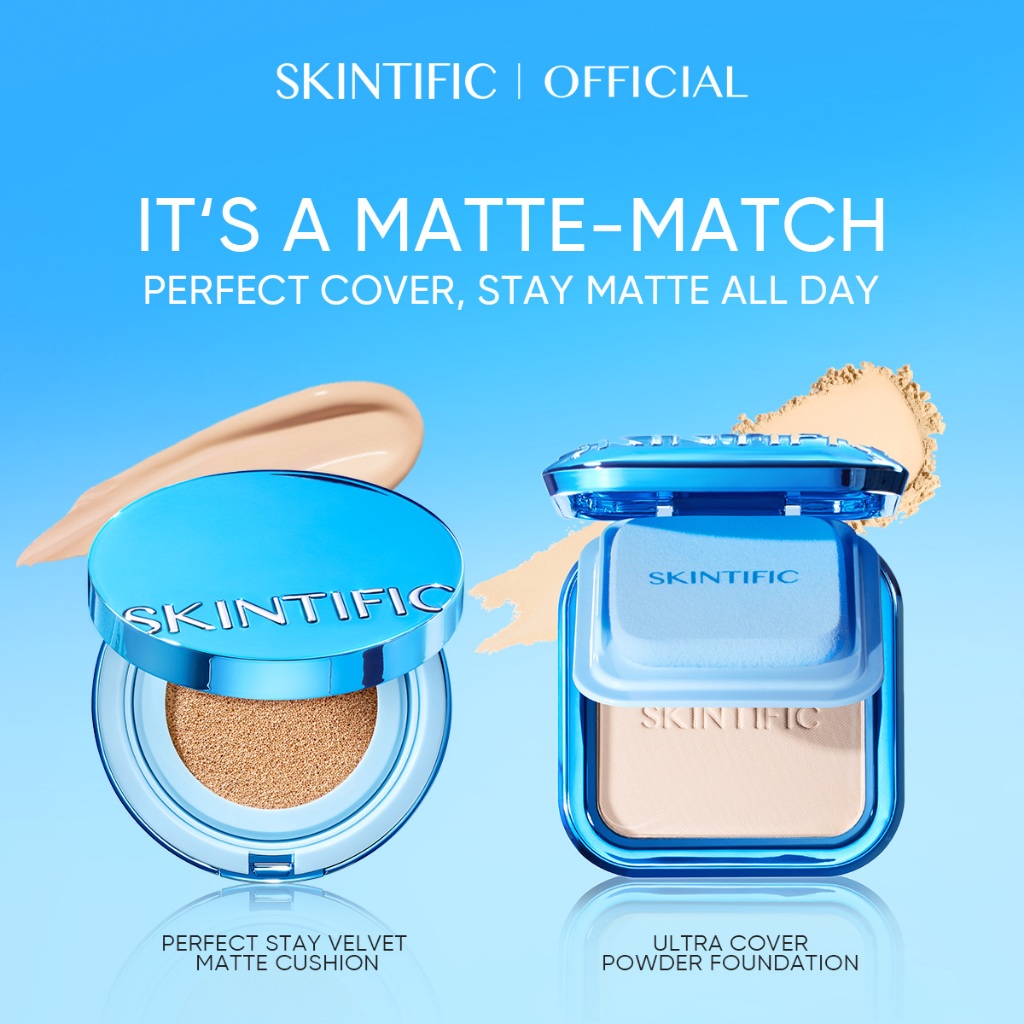 SKINTIFIC 2PCS PAKET MAKEUP SET | PERFECT STAY VELVET MATTE CUSHION 11ML + ULTRA COVER POWDER FOUNDATION 9G