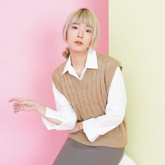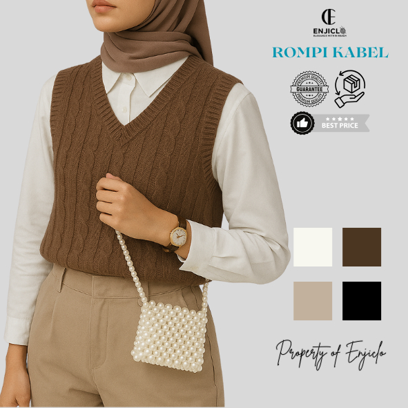 ENJICLO - Rompi CABLE Knit Vest Tebal 7get Korean Style