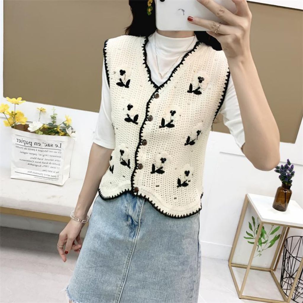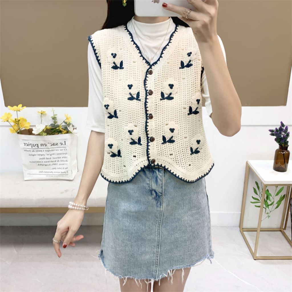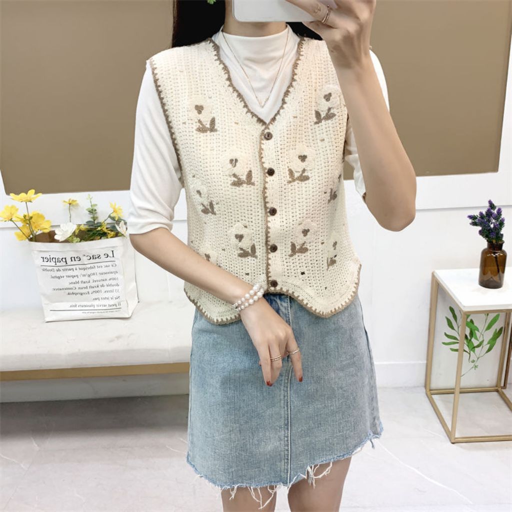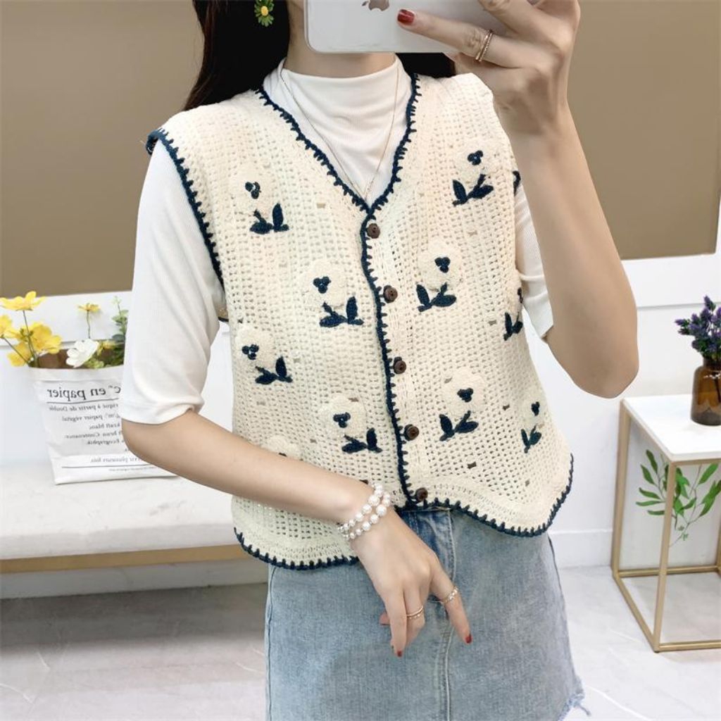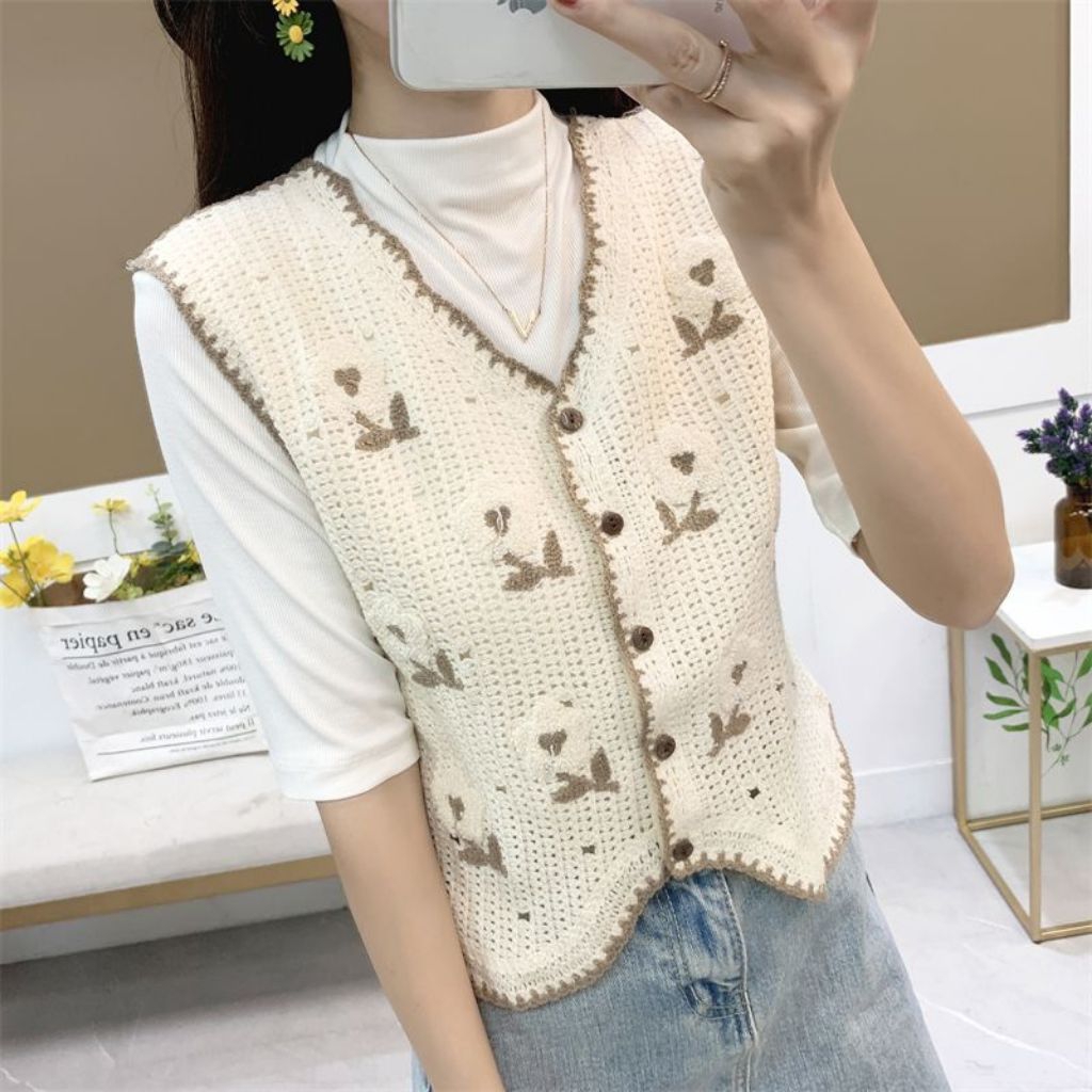 Vest Rompi Bunga2 Lucu V-neck Kancing Hidup Korea Style
