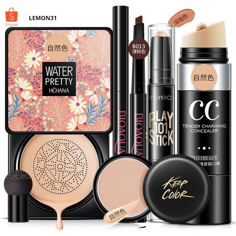 PAKET KOSMETIK 5IN1 DAPAT 5 PRODUK SET MAKEUP CONSEALER BEDAK PADAT CC CREAM EYEBROW BB CUSHION SESERAHAN HANTARAN NIKAH