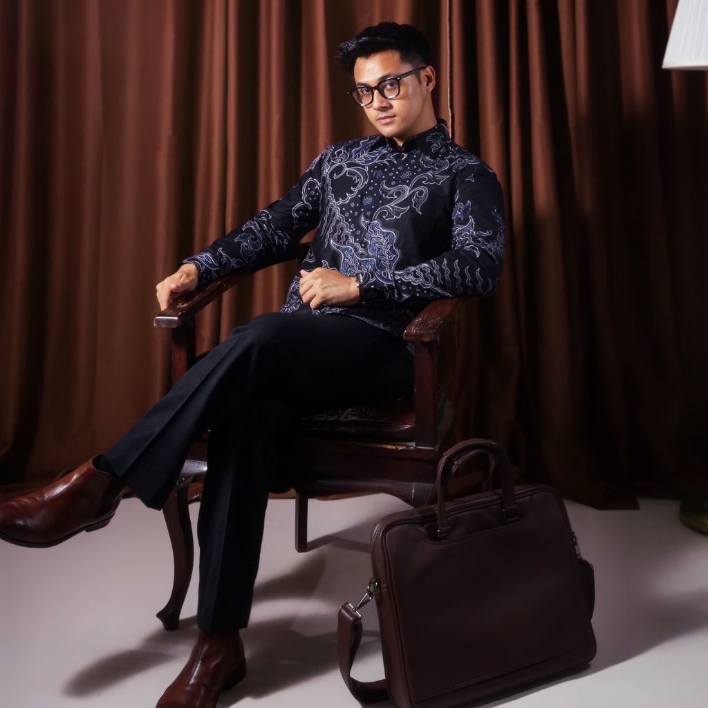 ENZY BATIK KEMEJA BATIK PRIA GANESHA - BLACK