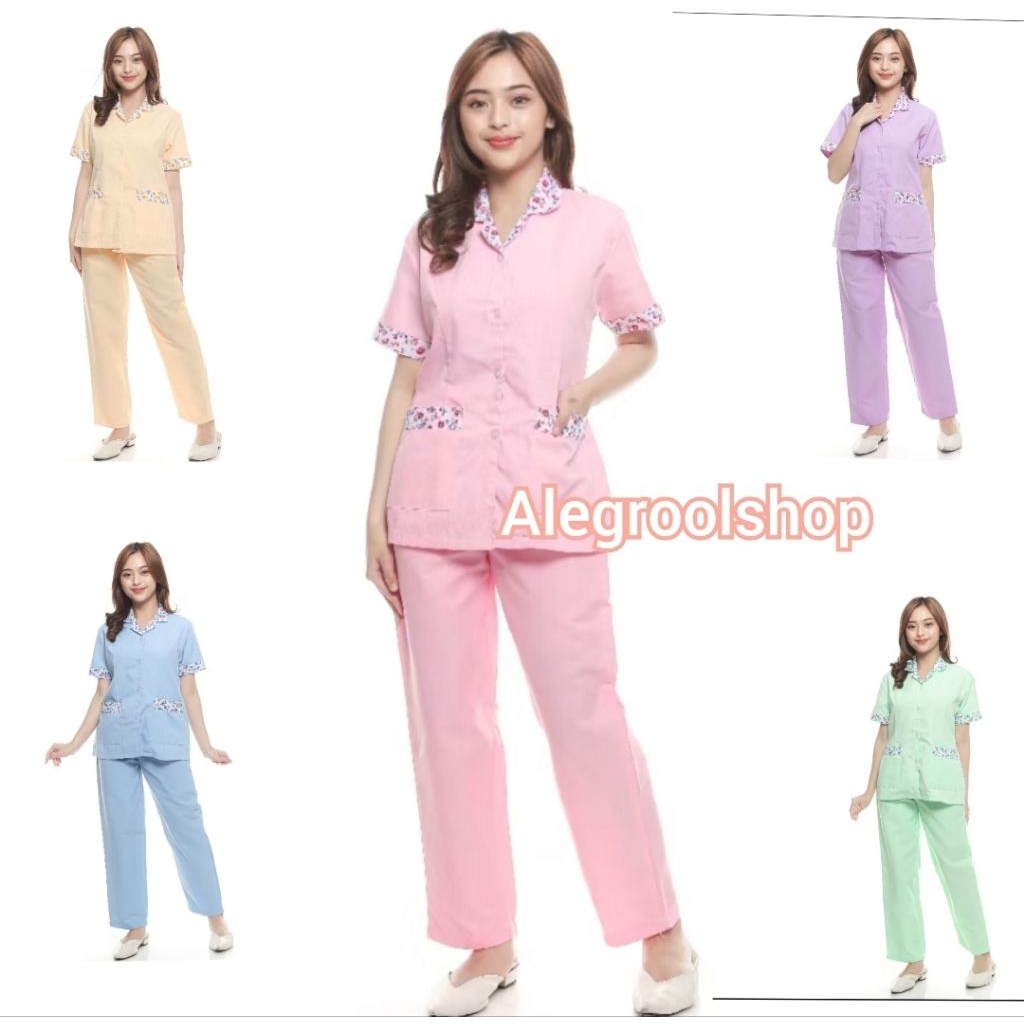 ALEGROOLSHOP - Baju seragam suster Seragam baby sitter Seragam nanny Motif bunga