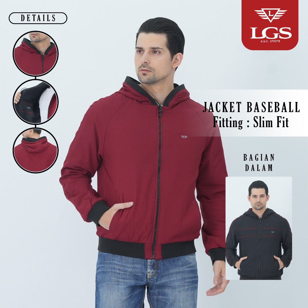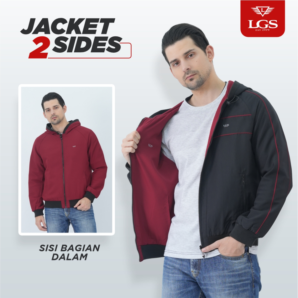 LGS - JAKET PRIA - 2 SIDE - HITAM MERAH - MODEL HOODIE ZIPPER - JJK.558.210.001.C