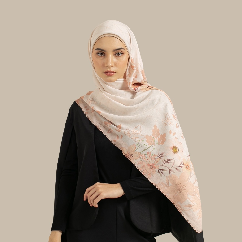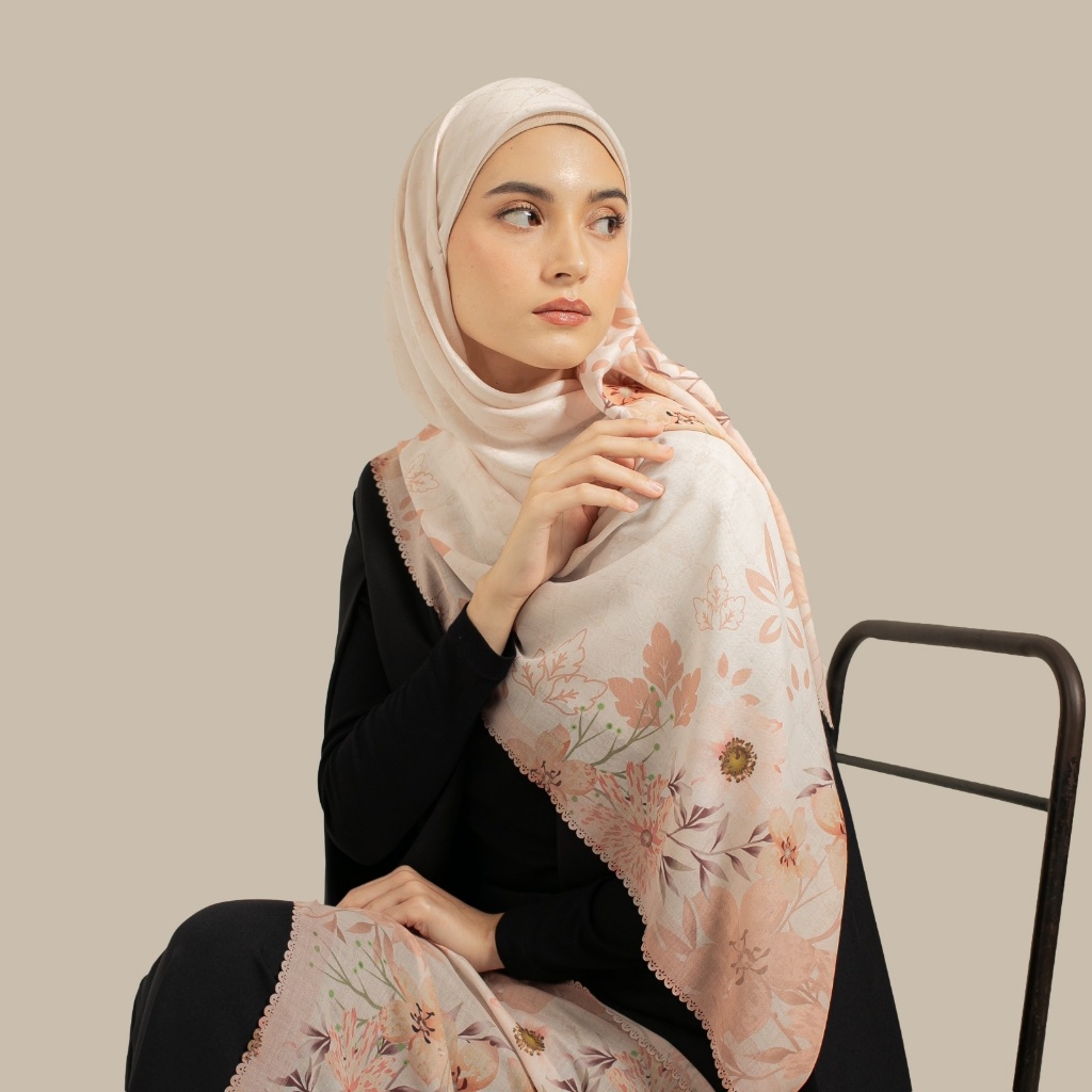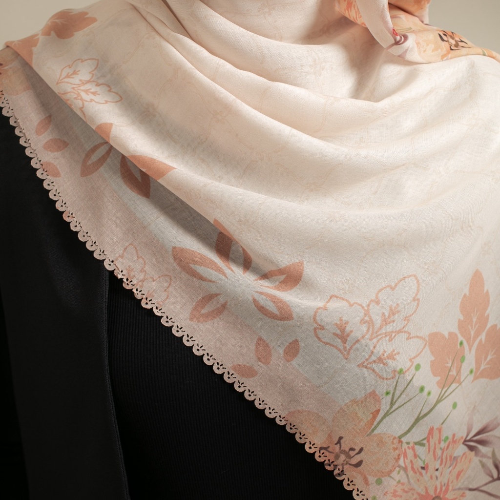 [Mall] WULANG NARAWANGSA HIJAB SEGI EMPAT SOFT FLOWER CREAMY MAYO | KERUDUNG SEGI EMPAT | HIJAB MOTIF SEGI EMPAT | HIJAB VOAL