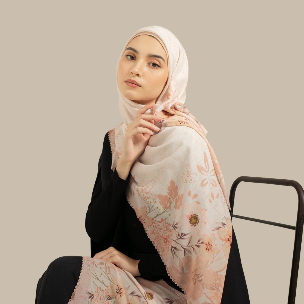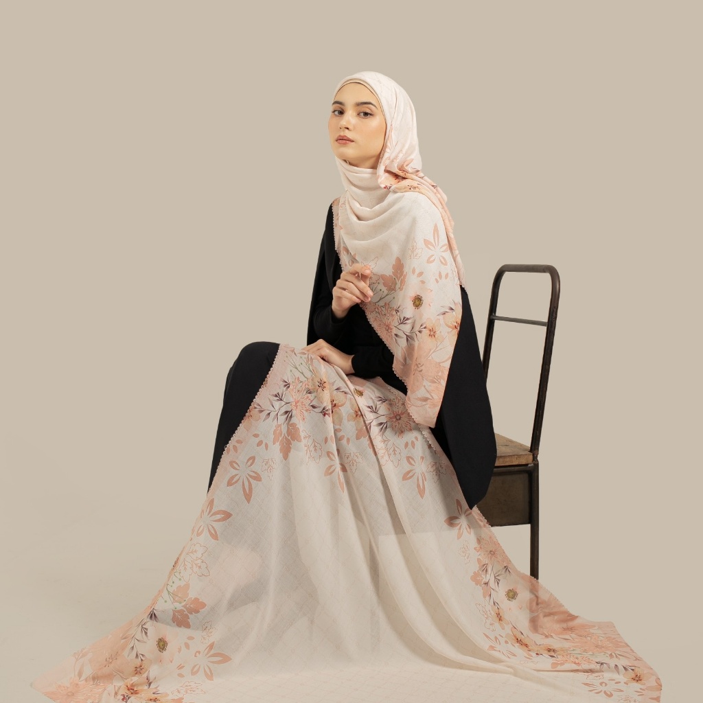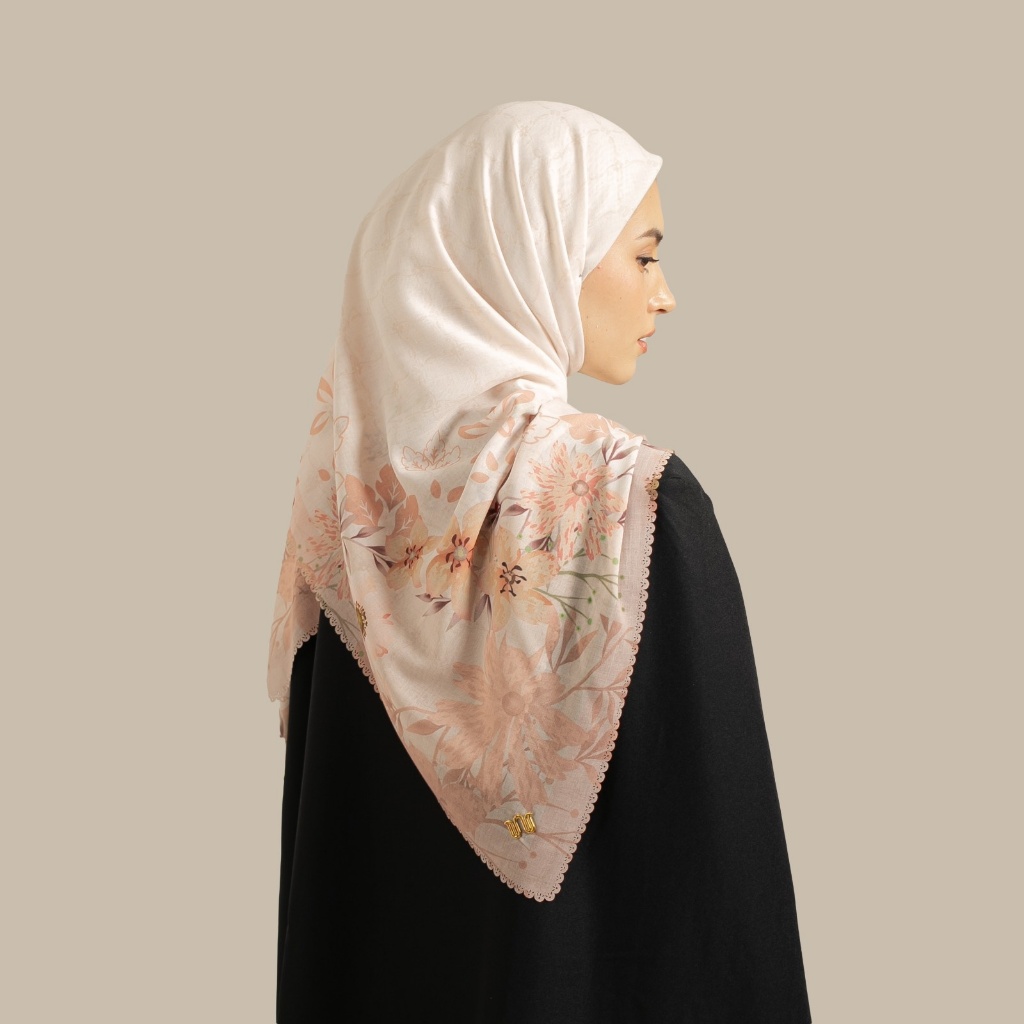 [Mall] WULANG NARAWANGSA HIJAB SEGI EMPAT SOFT FLOWER CREAMY MAYO | KERUDUNG SEGI EMPAT | HIJAB MOTIF SEGI EMPAT | HIJAB VOAL