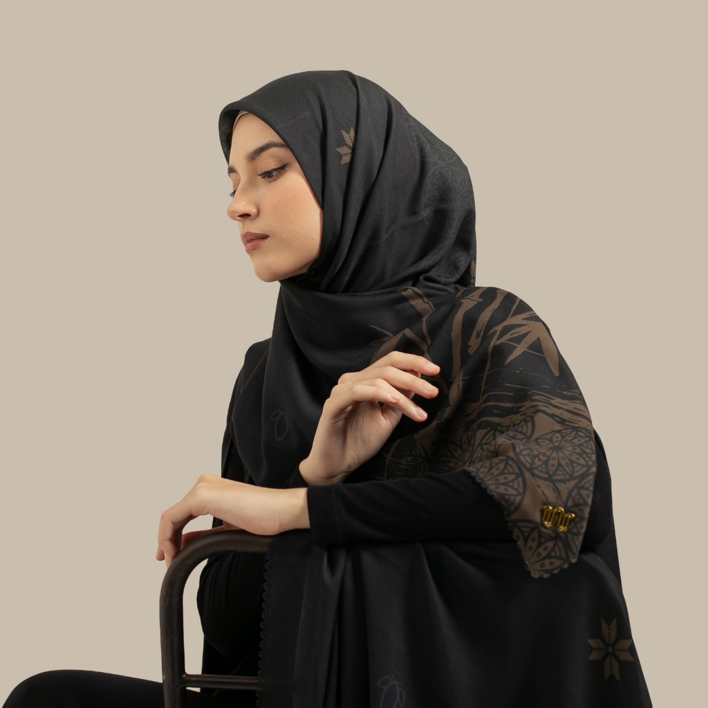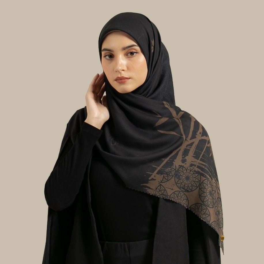 [Mall] WULANG NARAWANGSA HIJAB SEGI EMPAT BAMBOO BLACK | KERUDUNG SEGI EMPAT | HIJAB MOTIF SEGI EMPAT | HIJAB VOAL PREMIUM