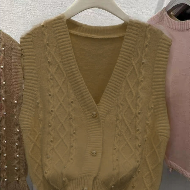 GDTIMA Rompi Rajut Wanita Style V-Neck Elegan Outer Tanpa Lengan Tampil Anggun Kekinian