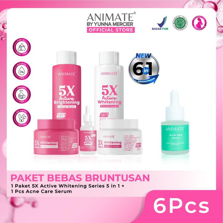 Paket Kulit Bruntusan Animate 5x Active Whitening Series 5in1 + Acne Care Serum