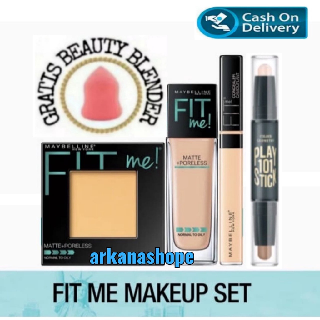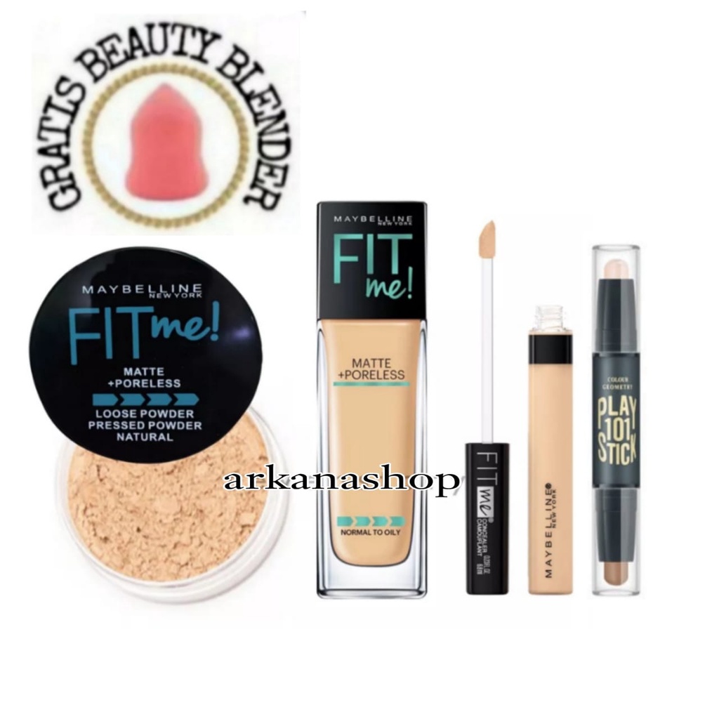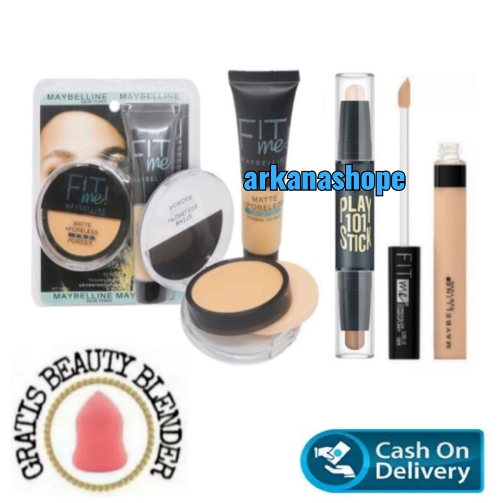 MAKE UP SET MAY FIT ME / PAKET KOSMETIK 1 SET LENGKAP / PAKET KECANTIKAN / FOUNDATION / BEDAK TABUR / BEDAK PADAT / CONCEALER / STICK CONTOUR / SPON MAKEUP