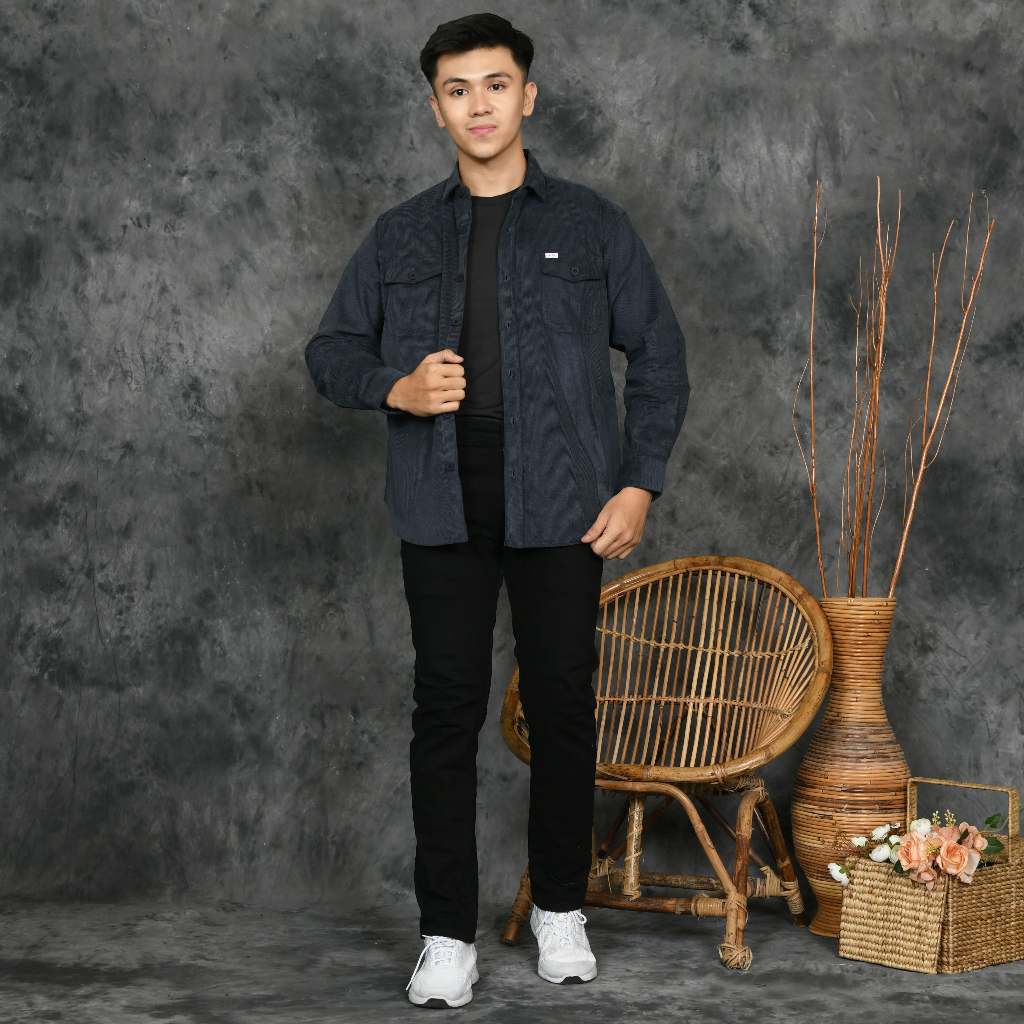 ARENJI KEMEJA CORDUROY PRIA OVER SIZE - COBALT