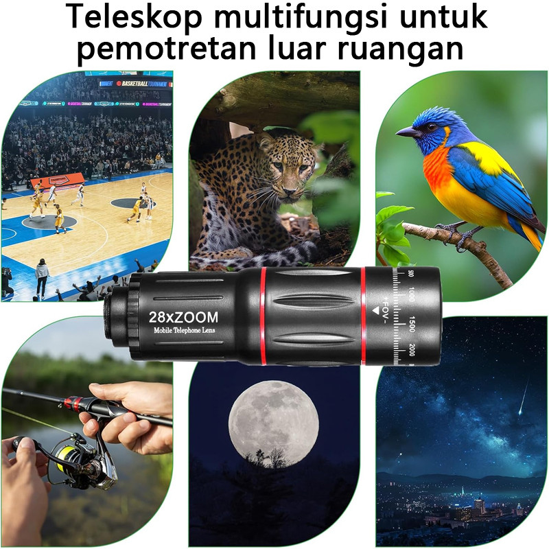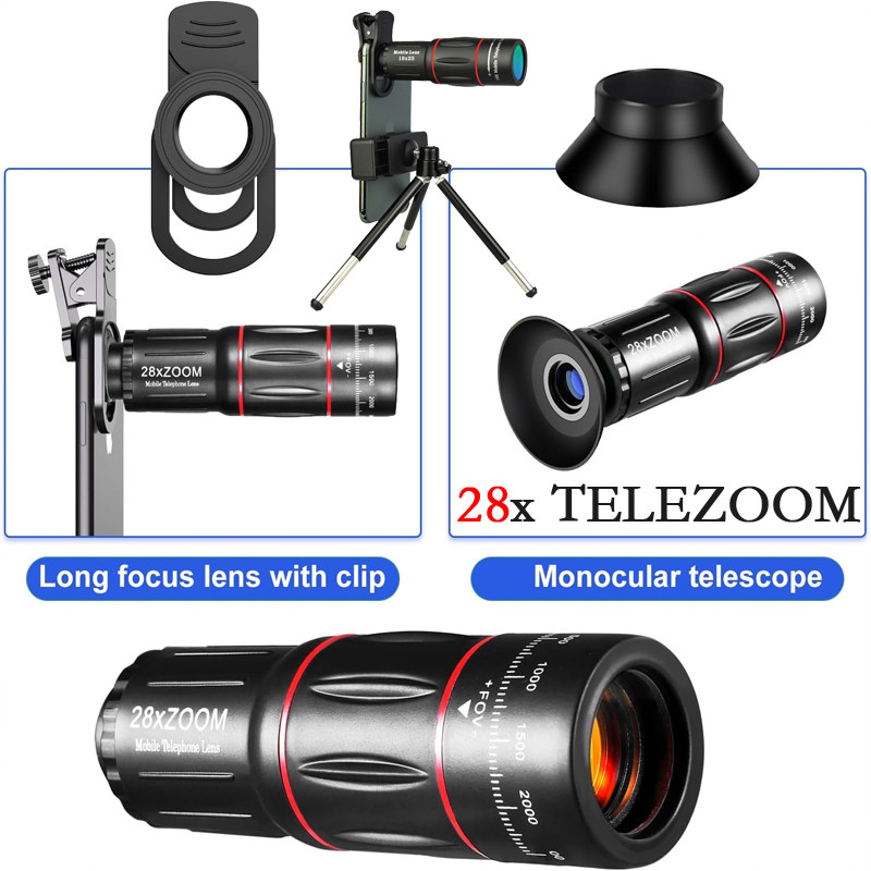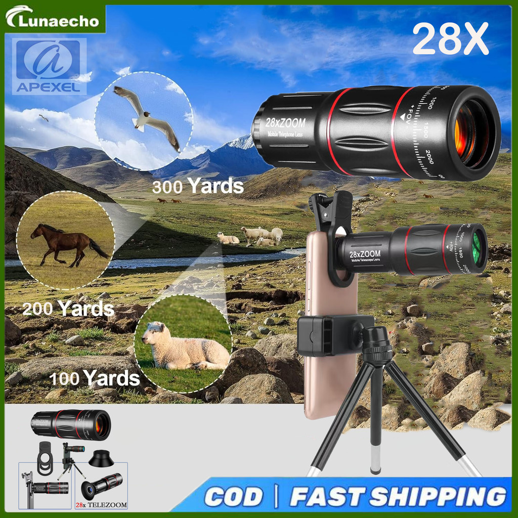 Lensa Tele Zoom HP Apexel Kit 28X36X64X + Tripod - Universal Untuk IPhone & Android, HD