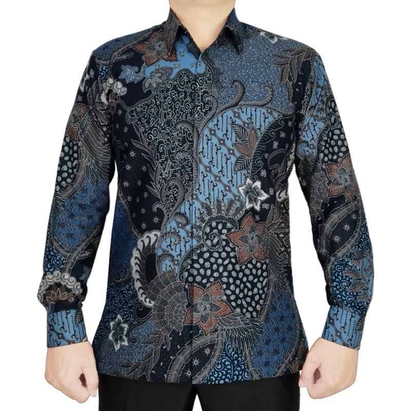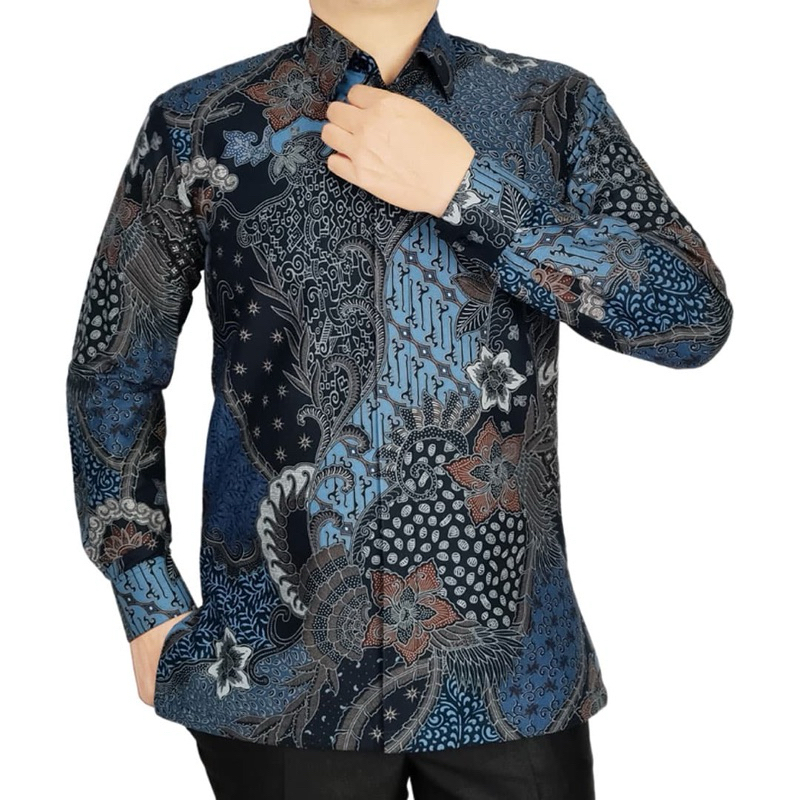 KEMEJA BATIK PRIA ELEGAN DAN STYLISH NUANSA BIRU - HANLEE BATIK 848