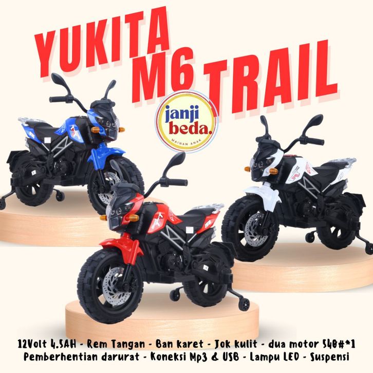 Mainan Anak Motor AKI TRAIL - YUKITA M6 12V Maenan motoran keren bagus hadiah gift merah biru putih mobil
