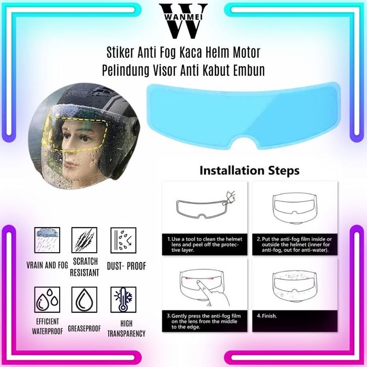 NEW Arrival WMStiker Anti Fog Kaca Helm Motor Anti Embun Tempelan Lapisan Anti Air Hujan/Sticker Pelindung Lensa