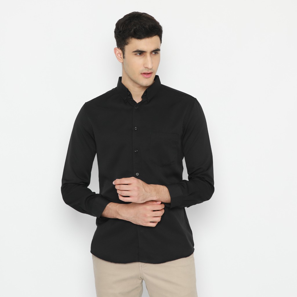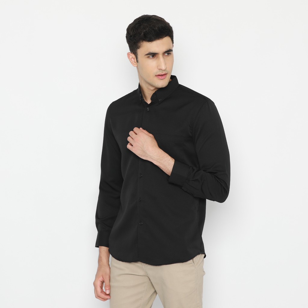 PLATINI BAJU KEMEJA PRIA LENGAN PANJANG POLOS POLINOSIC HITAM 66100
