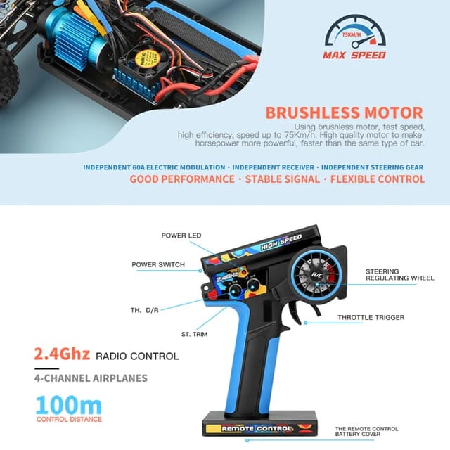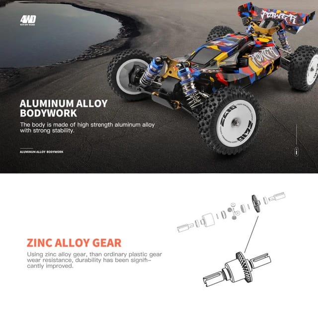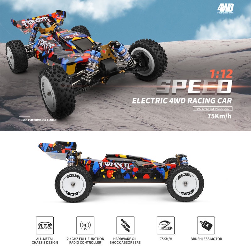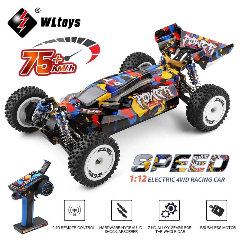 RC Car Mobil WL 124007 Brushless Buggy Metal Chassis 1/12 4WD 75KM/h