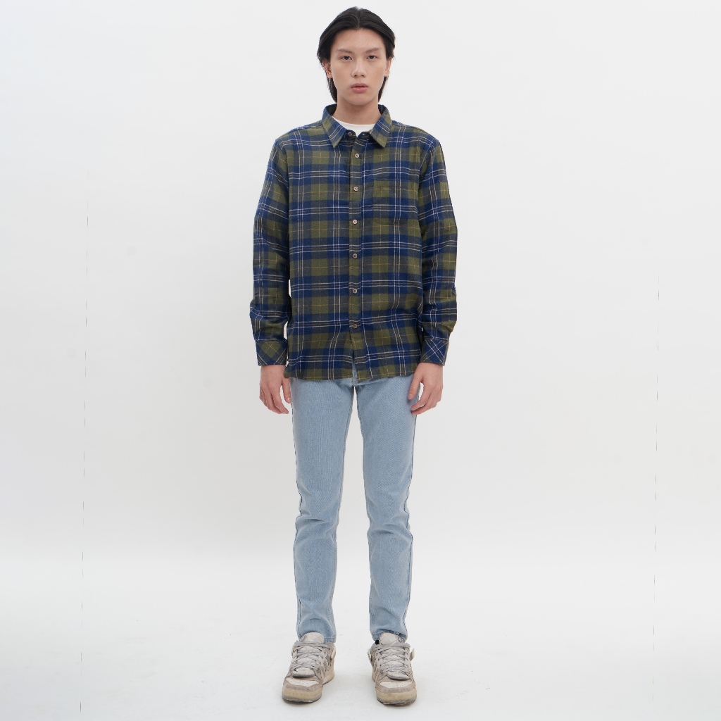 M231 Kemeja Pria Flannel Panjang Hijau 0145