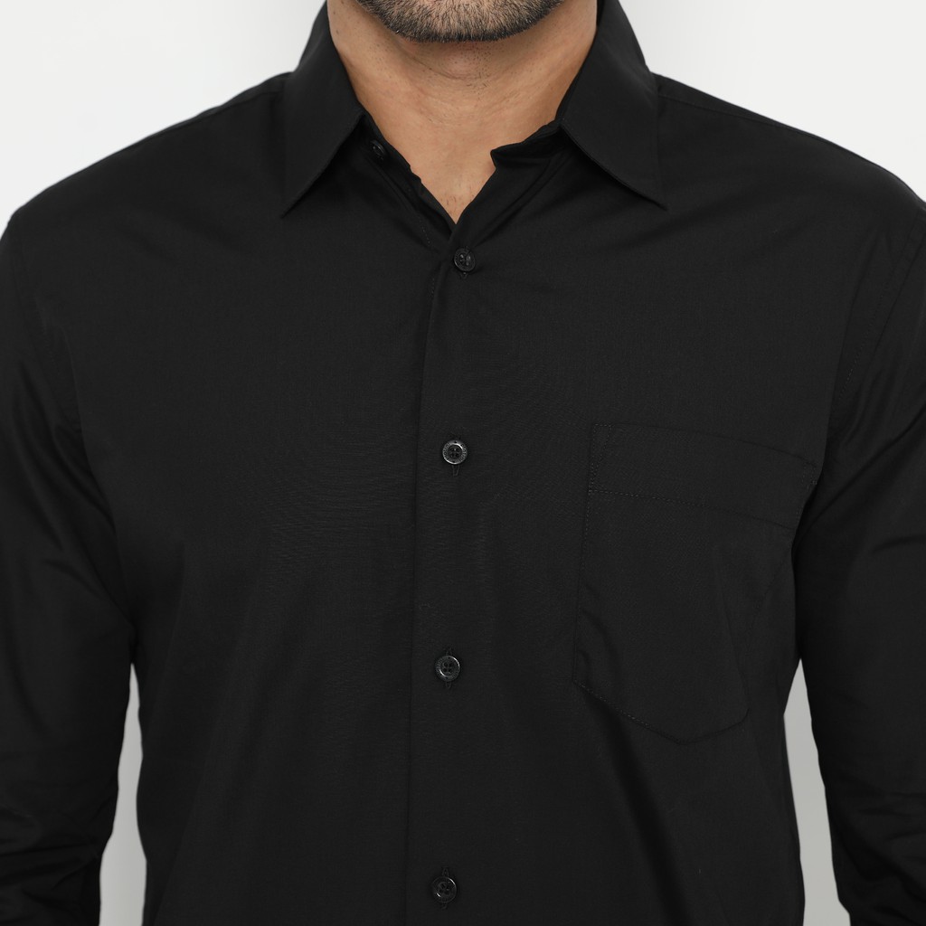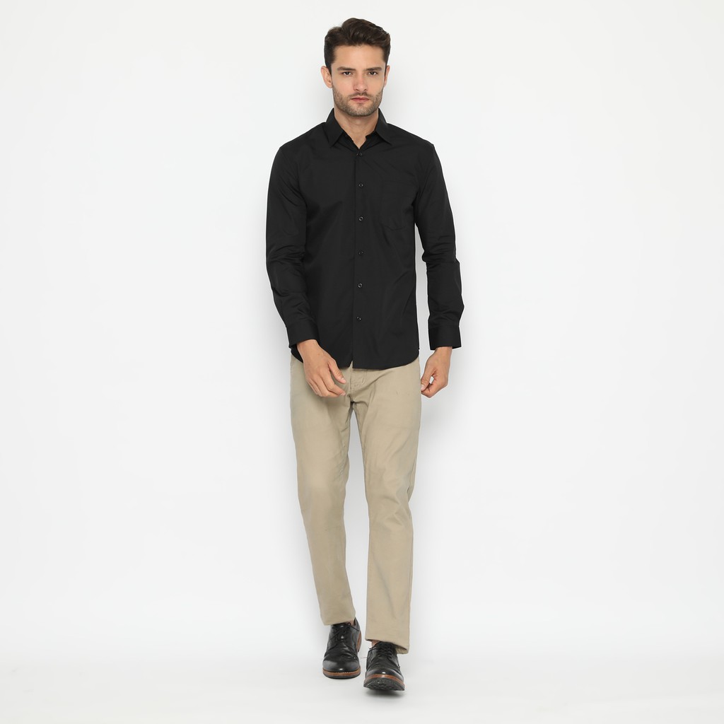 PLATINI BAJU KEMEJA POLOS BASIC PRIA PANJANG KATUN CVC HITAM 66174