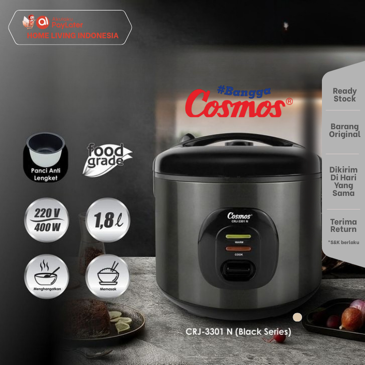 [Star] Magic Com Cosmos 1.8 Liter Terbaru CRJ-3301 Black Series Elegan Anti Lengket Mejikom Magicom Rice Cooker
