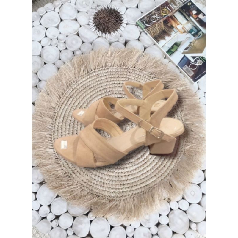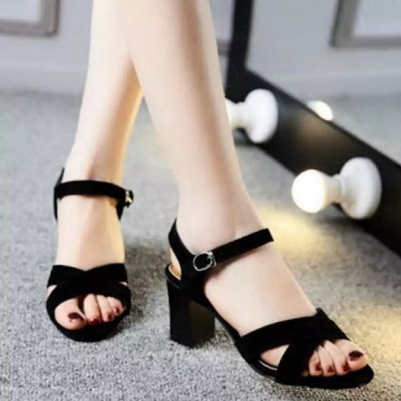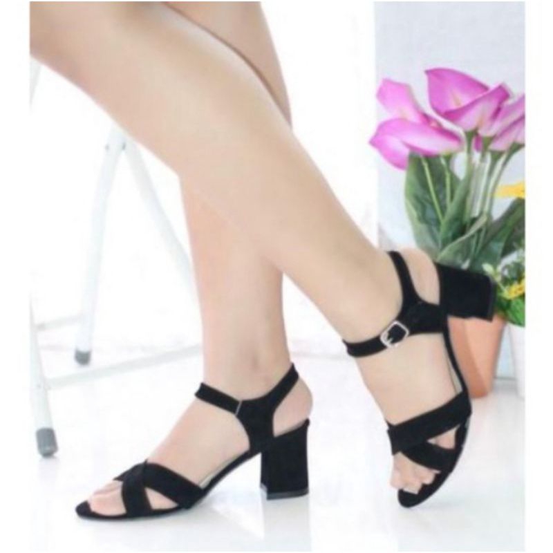SANDAL FLAT WANITA HIGHEELS CEWE HAK TAHU 5 CM EL SILANG FORMAL CASUAL