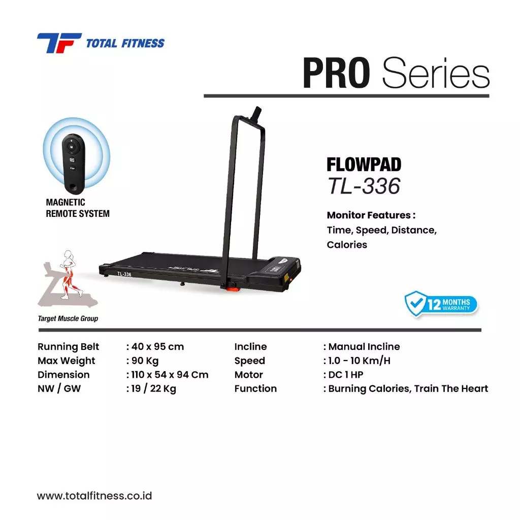 Treadmill Walking Pad Incline Total Fitness Pro Series Flowpad TL-336