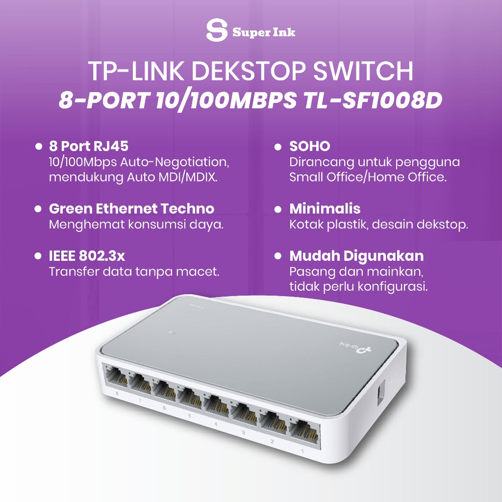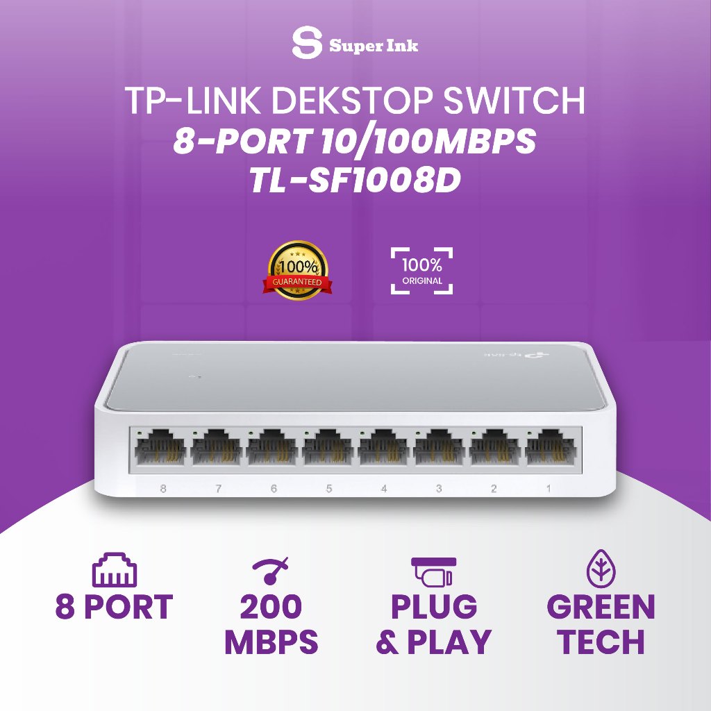 TP Link TL-SF1008D Switch LAN 8 Port 10100 Mbps Desktop Switch Hub – Kompatibel & Praktis