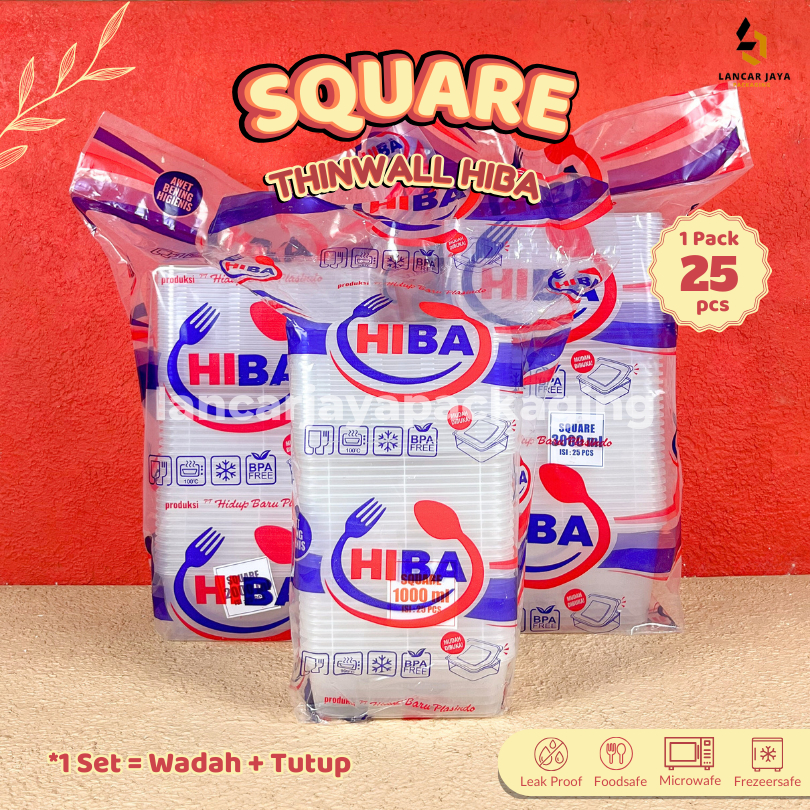 HIBA Thinwall Square Kotak Makan Plastik Persegi Wadah Nasi Berkat Kue 1000 1500 2000 2400 3000 ml