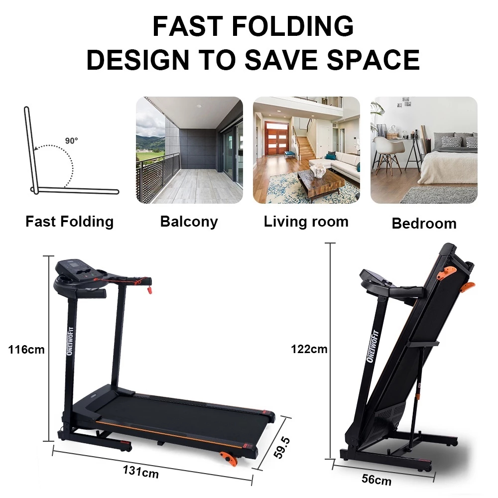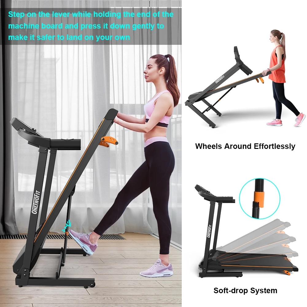 OneTwoFit Treadmill Elektrik Treadmill 2.5HP motor yang dapat dilipat Perbaikan Treadmill Dengan Bluetooth Auto Incline