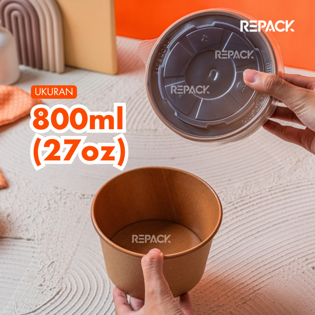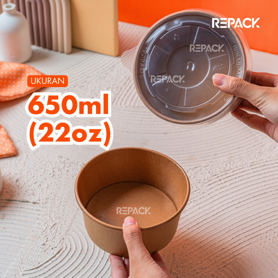 Mangkok Kertas Paperbowl + TUTUP 360ml 500ml 650ml 800ml Take Awayt bahan KRAFT LAMINASI