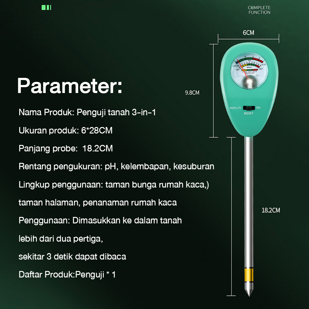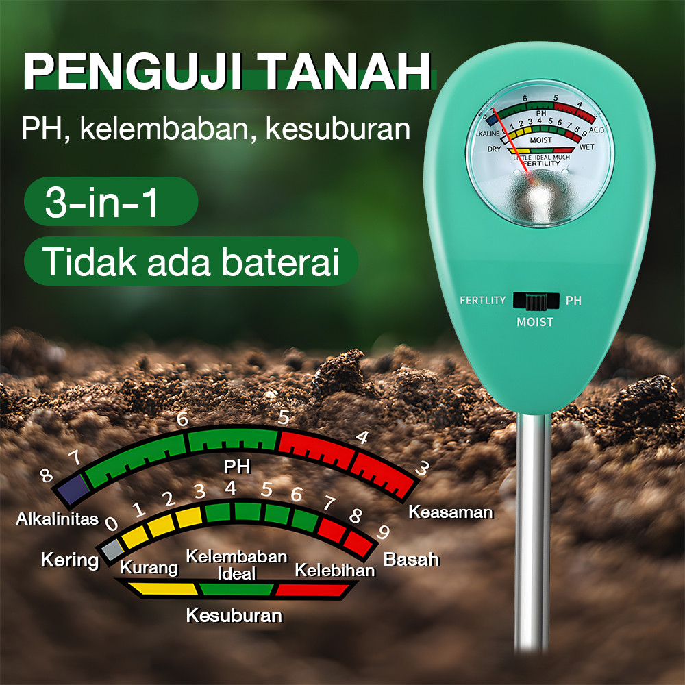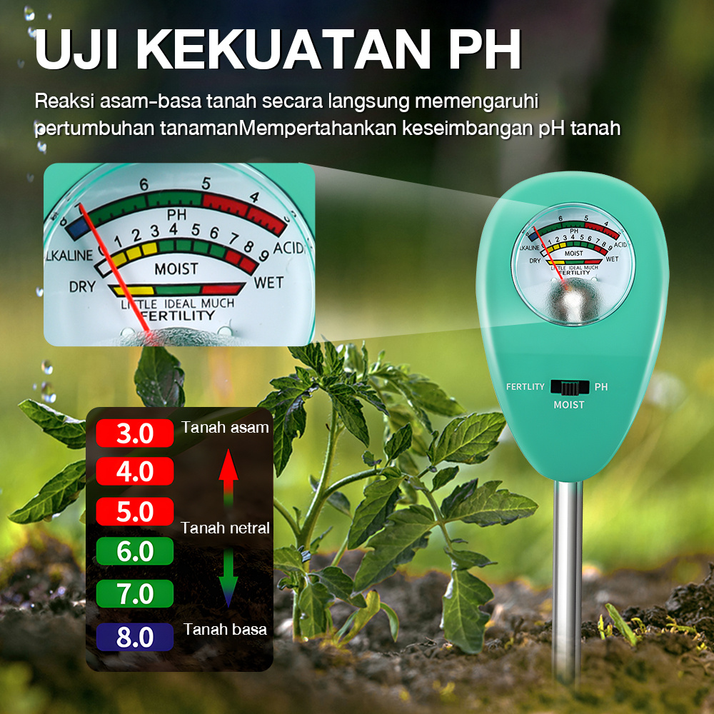 3 in 1 Soil Analyzer Tanah Tester Meter PH Meter Sunlight Meter Moisture Meter Suhu Alat Ukur